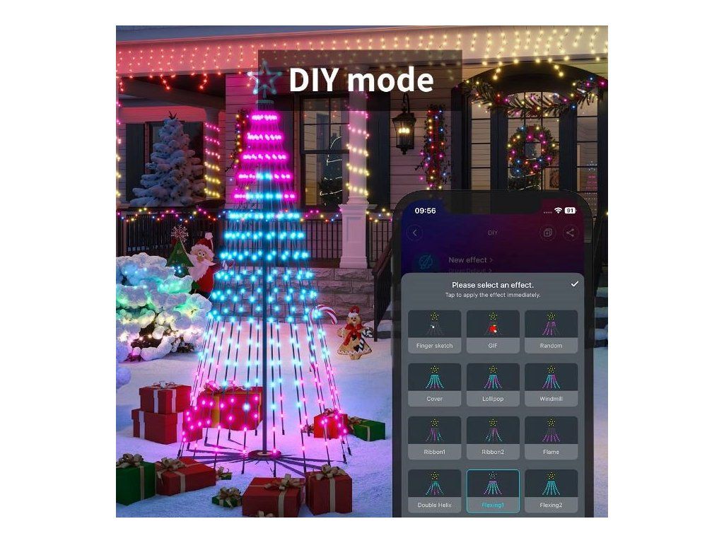 Vďaka svojej univerzálnej veľkosti a pevnej konštrukcii je stromček Govee vhodný na vnútorné aj vonkajšie použitie. Vďaka jednoduchému ovládaniu prostredníctvom aplikácie si môžete vybrať z desiatok rôznych svetelných scén a efektov, ktoré dokonale podčiarknu vianočnú náladu vo vašom dome a záhrade. V režime DIY si môžete vytvoriť vlastné scény. Intuitívne ovládanie a možnosť synchronizácie s hudbou navyše zabezpečia, že vaše vianočné dekorácie budú nielen krásne, ale aj interaktívne. V neposlednom rade je tu funkcia Dreamview, ktorá umožňuje synchronizovať viacero rôznych svetiel Govee do rovnakej farby, scény alebo efektu pre dokonalý zážitok. Stromček môžete ovládať aj hlasom a vďaka podpore protokolu Matter nie je problém integrovať ho do rôznych systémov Smart Home.
