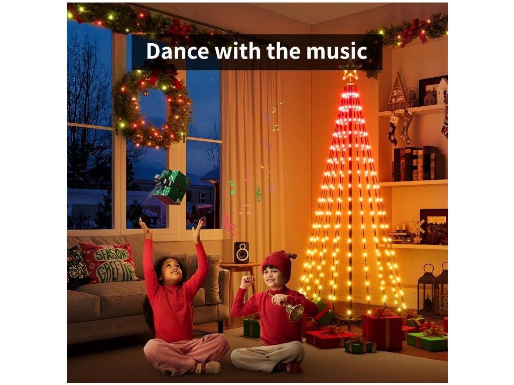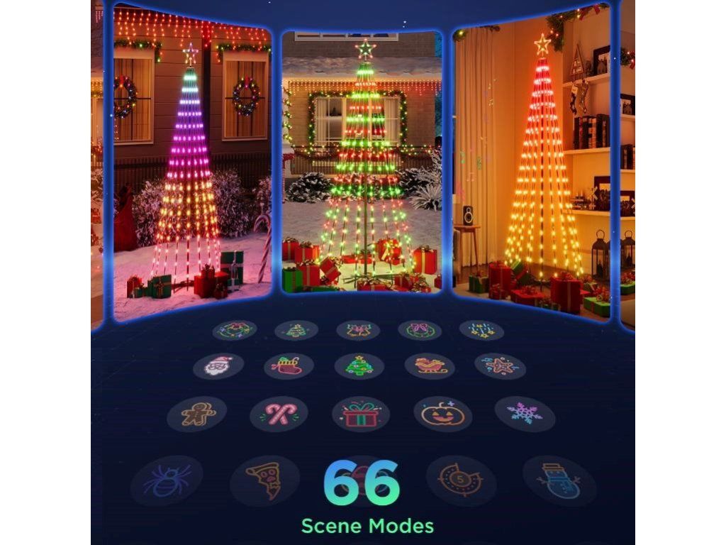 Stromček Govee ponúka viac ako 60 dômyselných svetelných scén s motívmi vhodnými pre sviatočnú náladu aj rôzne atmosféry počas celého roka. Môžete si tak vybrať zo širokej ponuky efektov, ktoré podčiarknu čaro Vianoc alebo vytvoria príjemnú náladu v závislosti od vašej momentálnej nálady. Okrem toho má dekorácia niekoľko možností hudobnej vizualizácie, ktoré vám umožnia synchronizovať svetlá s rytmami vašej obľúbenej hudby, čím sa svetelná šou zmení na interaktívny zážitok plný farieb a pohybu.