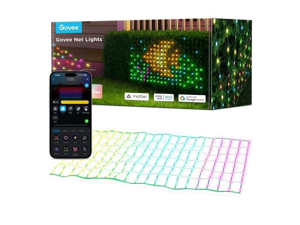 Govee RGBIC vonkajšia svetelná sieť - 1,2 x 1,2m Matter