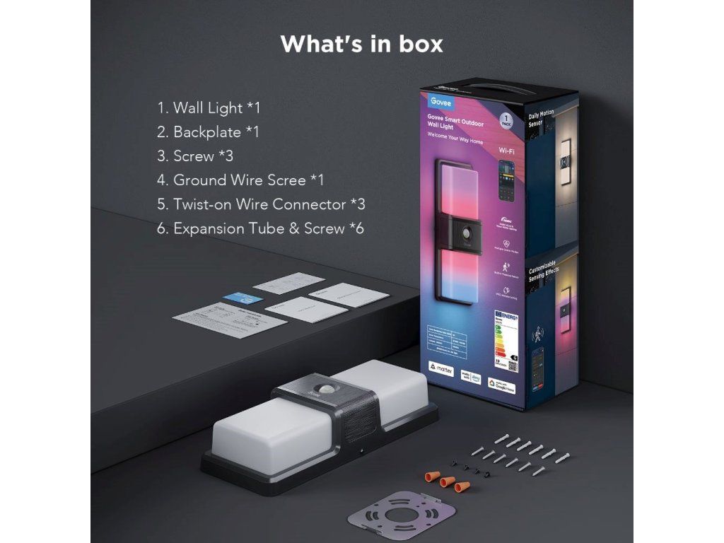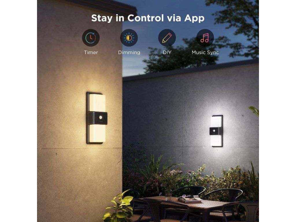 Inteligentné vonkajšie nástenné svietidlo Govee je ideálnym riešením na osvetlenie okolia domu, záhrady alebo dokonca garáže s príjazdovou cestou. Vďaka svojmu modernému dizajnu a kvalitnému spracovaniu dokonale doplní vzhľad vášho domu, terasy alebo záhrady a zároveň ponúka všestranné funkcie, ako napríklad snímač pohybu.