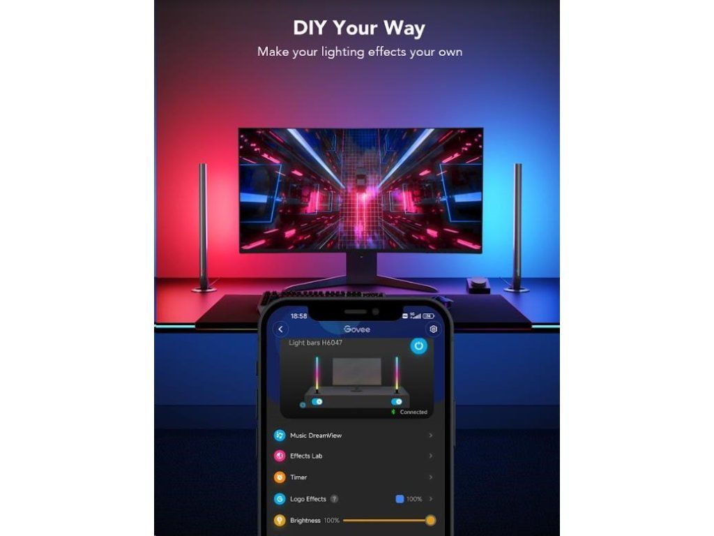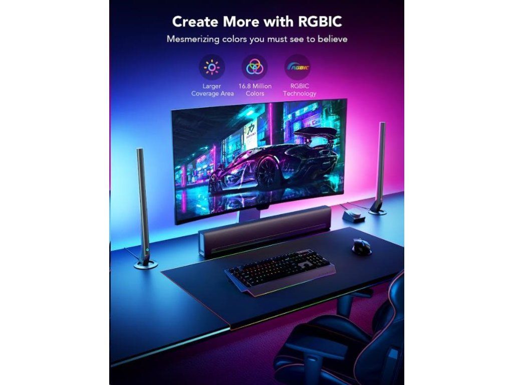 Zlepšite svoje herné, filmové a hudobné zážitky s chytrými svetelnými panelmi Govee Smart Gaming. 16 miliónov farieb s 62 režimami a 8 režimami pre synchronizáciu s hudbou pozdvihnú zážitok zo sledovania televízie alebo hrania hier na novú úroveň. Ovládajú sa hlasom cez Siri, Amazon Alexa alebo Google Assistant, cez aplikáciu alebo cez Smart Dual ovládač. Preto ani nebudete musieť vstať z gauča. Farebné podsvietenie opticky zväčšuje obraz, šetrí oči a má životnosť až 50 000 hodín.