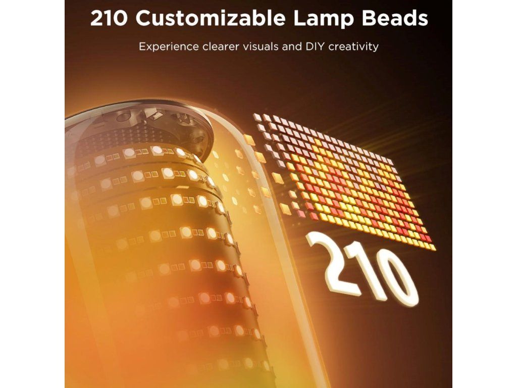 Lampa je vybavená 210 vysoko kvalitnými LED diódami, ktoré poskytujú ostré a dynamické vizuálne efekty, a ponúka viac ako 100 prispôsobiteľných scén na vytvorenie perfektnej atmosféry. 16 režimov reagujúcich na hudbu reaguje na zvuk za pouhých 32 ms, takže svetlo drží krok s každým rytmom. Vstavaná batéria s kapacitou 5200 mAh umožňuje až 4,5 hodiny bezdrôtového osvetlenia a zvuku kdekoľvek. Funkcia tap-to-wake, duálne rozhranie Type-C a podpora stereo párovania z neho robia zariadenie, ktoré je rovnako flexibilné ako štýlové. Navyše, vďaka 210 bodom DIY pre nekonečnú kreativitu môžete úplne prispôsobiť svetelné efekty.