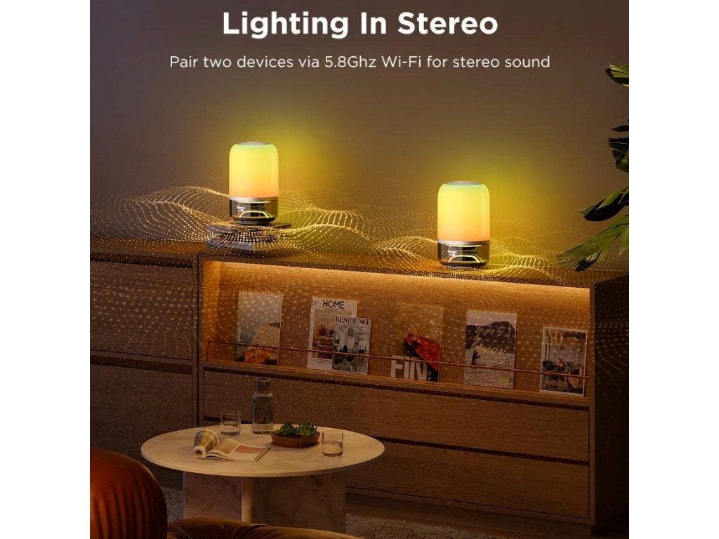 Podpora stereo párovania vám umožňuje pripojiť dve lampy pre priestranný, hlboký a úplne pohlcujúci zvuk. Hudba znie tak realisticky ako v profesionálnom štúdiu. Ideálne pre filmy, hry alebo párty.