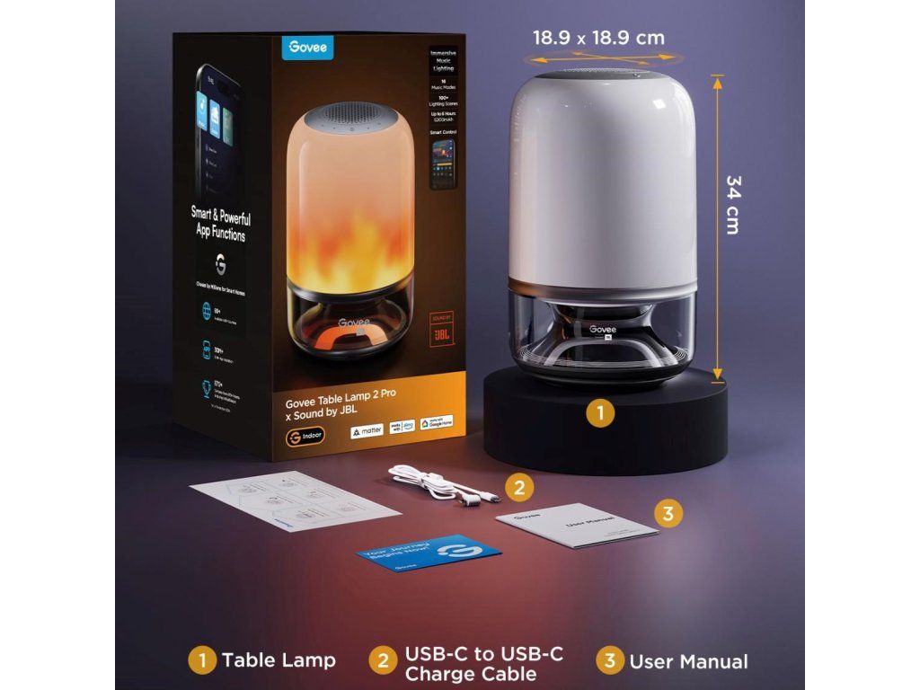 Inteligentné funkcie sú rovnako pôsobivé ako samotný hardvér. Všetko ovládajte prostredníctvom aplikácie Govee Home, hlasom cez Alexu alebo Google Assistant alebo cez štandard Matter pre bezproblémovú integráciu do vašej inteligentnej domácnosti. S Music DreamView môžete synchronizovať až 10 zariadení Govee a vytvoriť tak úchvatnú svetelnú show v celej miestnosti. Vďaka možnosti nastaviť jas a farebnú teplotu pre každú scénu sa lampa stáva dokonalým doplnkom pre každú náladu alebo príležitosť.