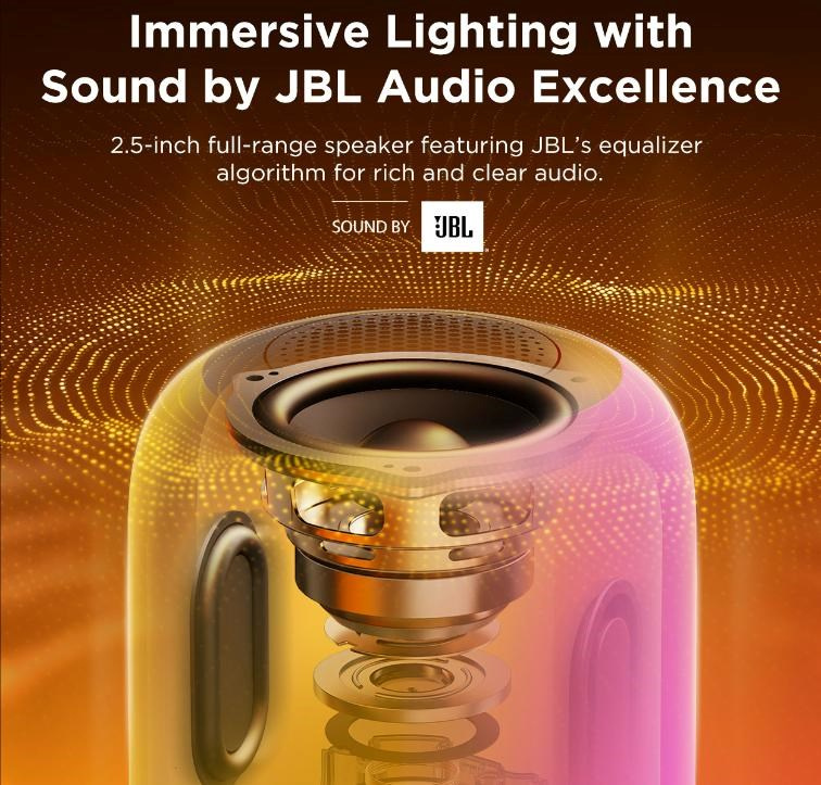 Zažite hudbu a svetlo ako nikdy predtým vďaka kombinácii žiarivého RGBICWW osvetlenia a prémiového zvuku JBL. Lampa premení každú miestnosť na malé javisko, ktoré reaguje na rytmus hudby. Či už relaxujete, hráte hry alebo usporadúvate párty, budete úplne pohltení atmosférou.