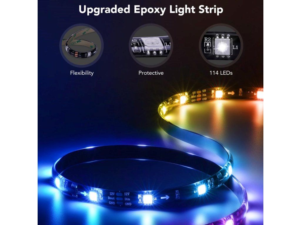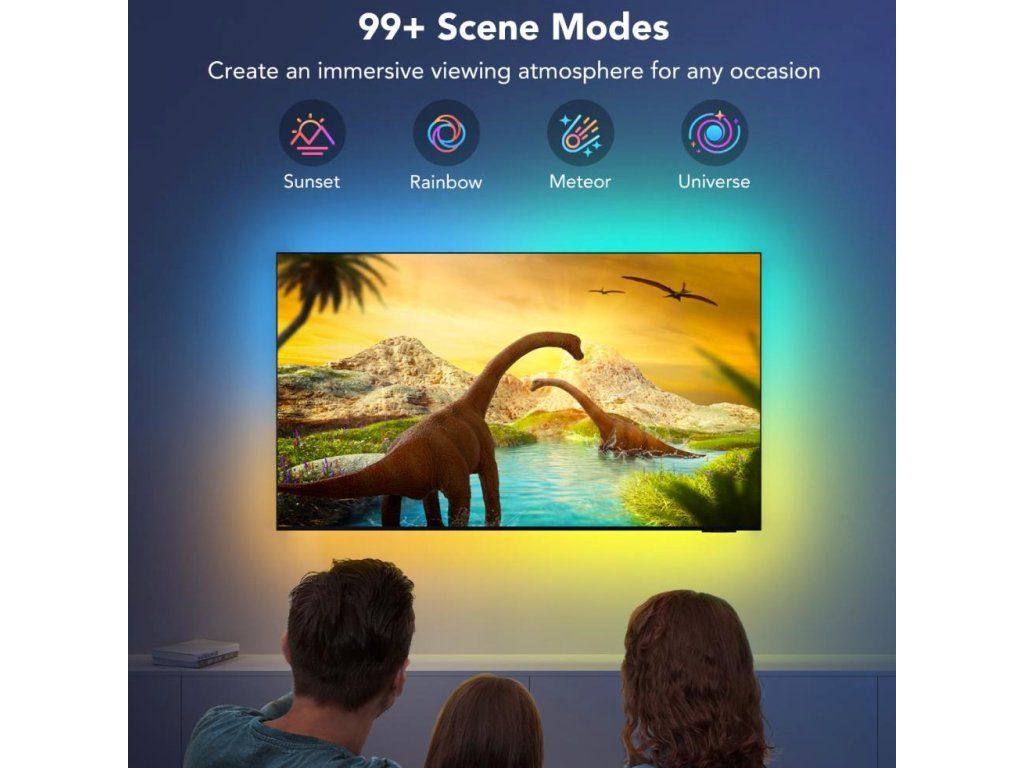 Nový LED pásik RGBIC vám umožňuje zobraziť viacero farieb súčasne, čím vytvoríte dynamické a živé svetelné efekty. Vďaka pokročilej technológii podsvietenia sa váš televízor premení na zábavné centrum s intenzívnou a pohlcujúcou atmosférou. Vychutnajte si dokonale plynulé farebné prechody a vizuálne efekty, ktoré bežné LED pásiky nemôžu ponúknuť.