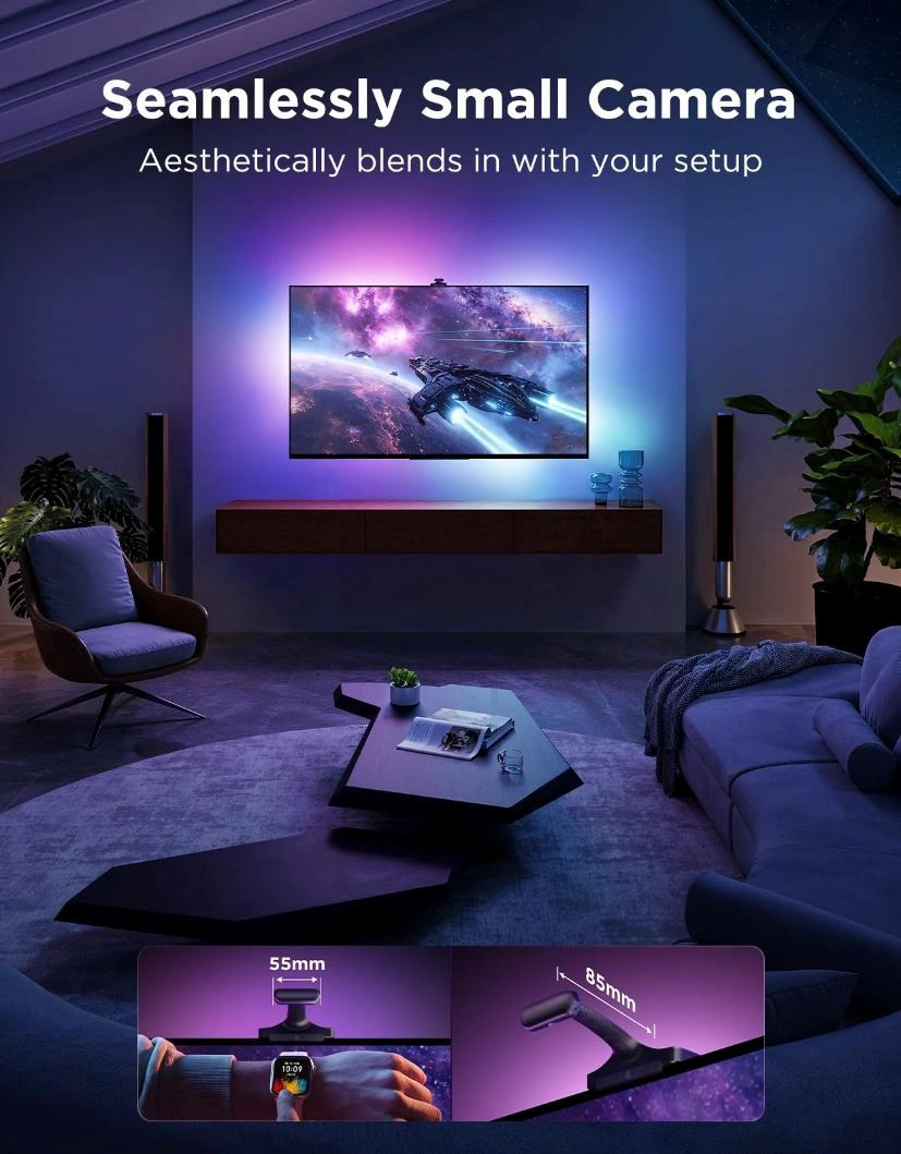 Nová kamera je extrémne malá a nenápadná, takže neruší vzhľad televízie ani interiéru. Vďaka kompaktnému dizajnu ju môžete ľahko pripojiť k akejkoľvek televízii. Pri sledovaní obsahu si ju takmer nevšimnete, ale jej výkon okamžite oceníte.