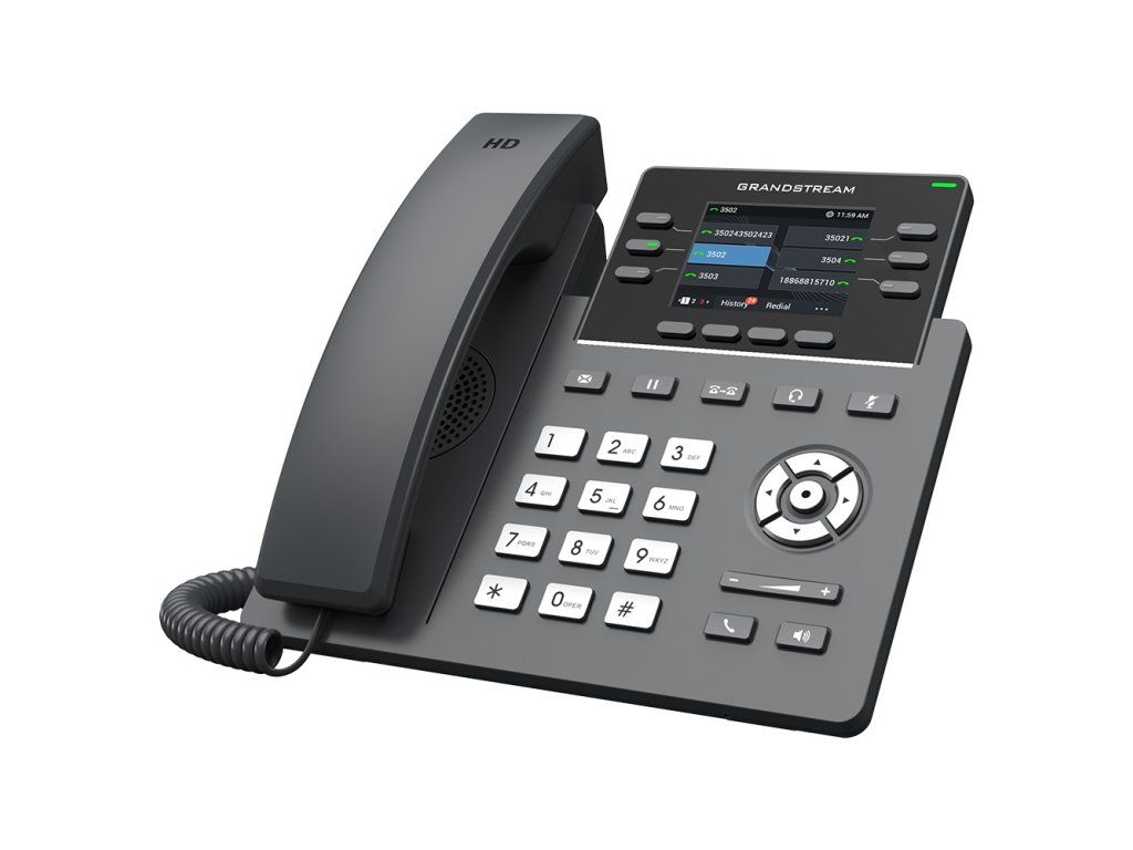 Profesionální 6řadý IP telefon navržený pro hromadné nasazení a snadnou správu. GRP2613(W) obsahuje 24 virtuálních víceúčelových klíčů (VPK), integrovanou Wi-Fi 6 (GRP2613W), duální gigabitové porty, barevný LCD s vyměnitelnými čelními deskami pro snadné přizpůsobení loga a další. Je podporován systémem správy zařízení (GDMS) společnosti Grandstream. Klíčové vlastnosti: Podporuje až 4 SIP účty a 6 víceúčelových linek Vyměnitelné čelní desky umožňují snadné přizpůsobení loga Duální přepínané autosensing 10/100/1000 Mbps gigabitové ethernetové porty s integrovaným PoE Vybaveno technologií noise shield pro minimalizaci hluku na pozadí HD zvuk s podporou všech hlavních kodeků, včetně širokopásmových kodeků G.722 a Opus Až 24 digitálních BLF klíčů Integrovaná dvoupásmová (2,4 GHz a 5 GHz) Wi-Fi 6 (802.11a/b/g/n/ac/ax) a Bluetooth® Ochrana na podnikové úrovni včetně zabezpečeného spouštění, duálních bitových kopií firmwaru a šifrovaného úložiště datDodatočné parametre
