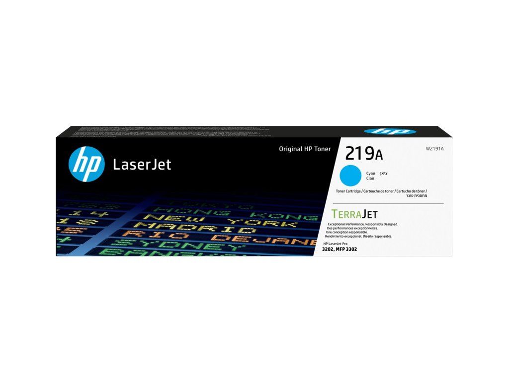 Azurová originální tonerová kazeta HP 219A LaserJet (W2191A) Tonerové kazety HP TerraJet jsou navrženy pro efektivní využití toneru pro menší plýtvání a vynikající kvalitu tisku s integrovaným zabezpečením.