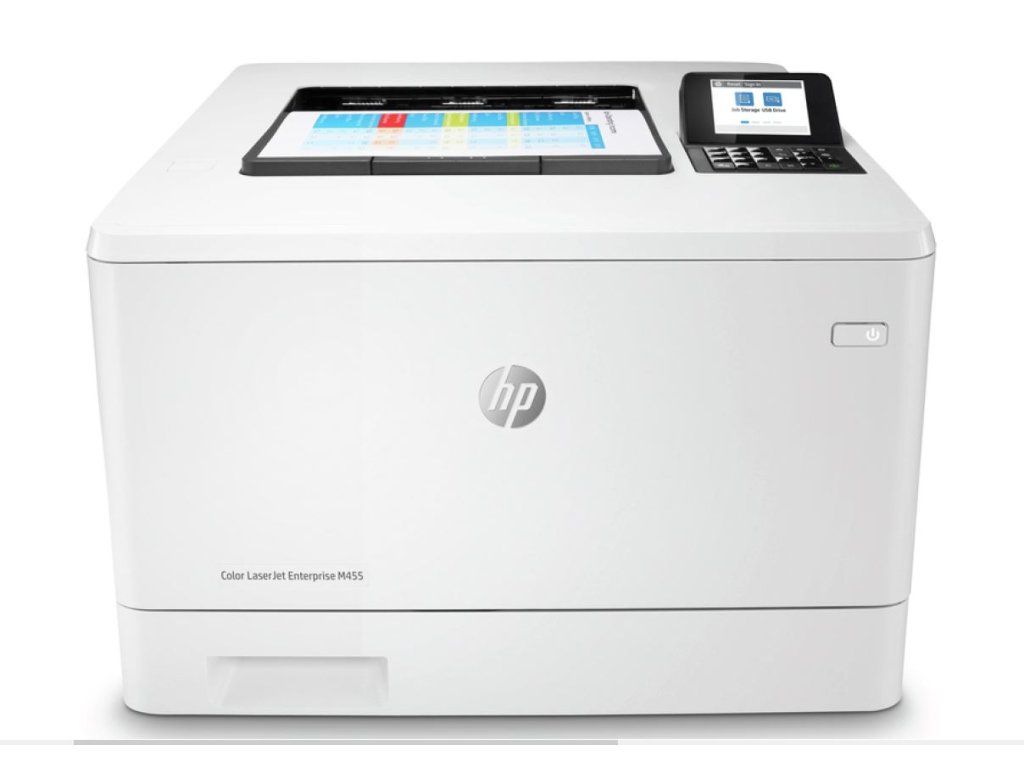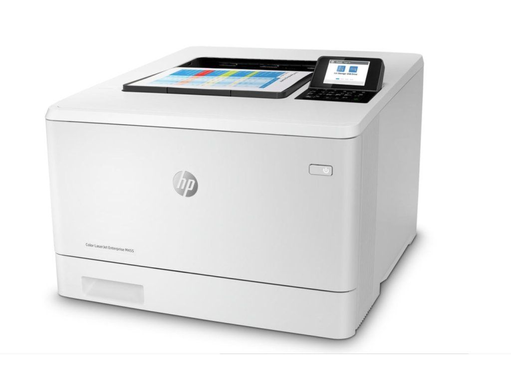 Obsah balení: Tiskárna HP Color LaserJet Enterprise M455dn, Černá originální tonerová kazeta HP LaserJet (cca 2 400 stran), Azurová, purpurová, žlutá originální tonerová kazeta HP LaserJet (každá kazeta cca 2 100 stran), Úvodní příručka, 1x napájecí kabel