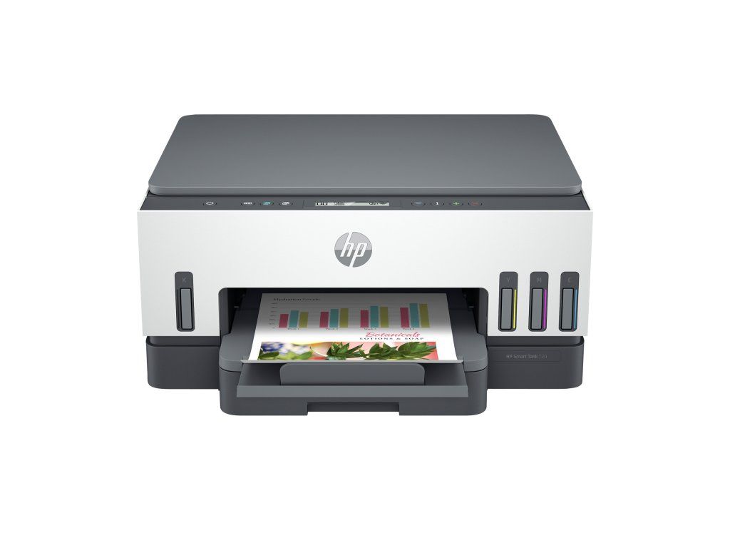 | Obsah balenia | HP Smart Tank 720 All-in-One; 3 x 135 ml Fľaša s originálnym čiernym atramentom HP GT53XL; Fľaša s originálnym azúrovým atramentom HP GT52; Fľaša s originálnym purpurovým atramentom HP GT52; Fľaša s originálnym žltým atramentom HP GT52; Napájací kábel; Čierna tlačová hlava HP; Trojfarebná tlačová hlava HP; Inštalačná príručka; Referenčná príručka; Leták s upozornením na atrament; Letáky s právnymi informáciami; Letáky o záruke; Ďalšie informácie o náplni a výťažnosti nájdete na stránke http://www.hp.com/go/learnaboutsupplies |
