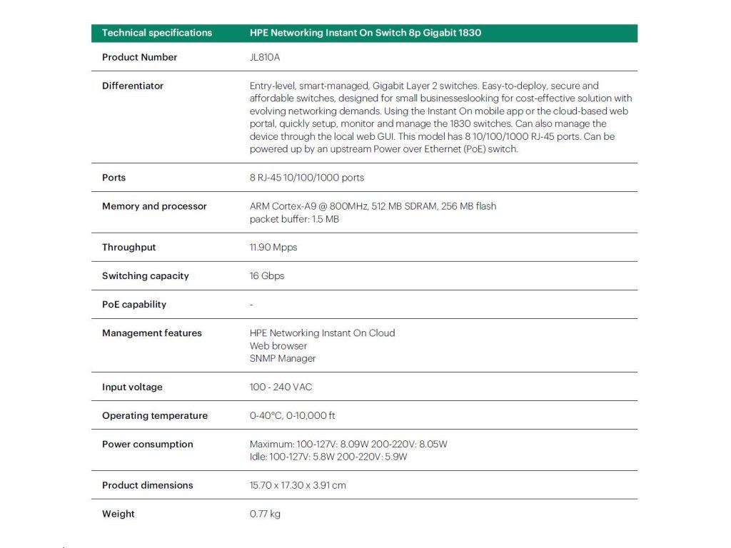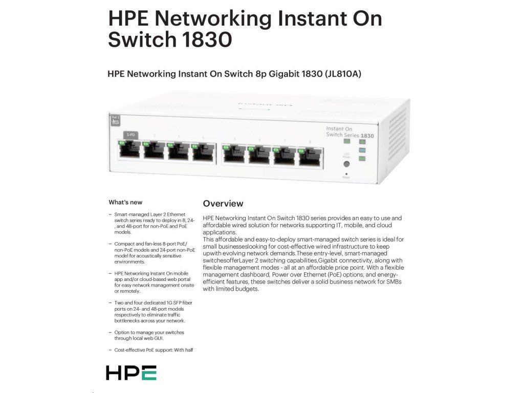 HPE Networking Instant On Switch 8p Gigabit JL810A 1830 (fanless)