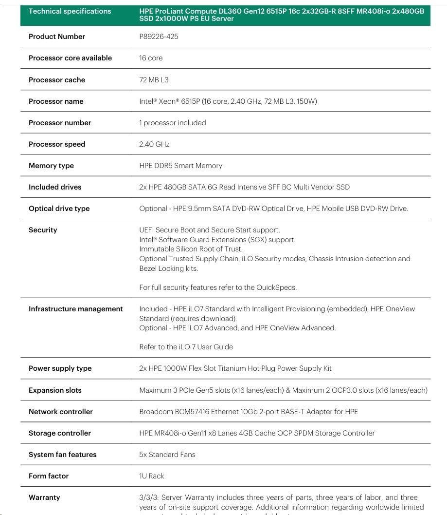 HPE PL DL360g12 6517P (3.2/16C) 2x32G (P69727) NS204 (2x480) MR408i-o 8SFF 2x1000W 4p1G NBD333 Smart Choice