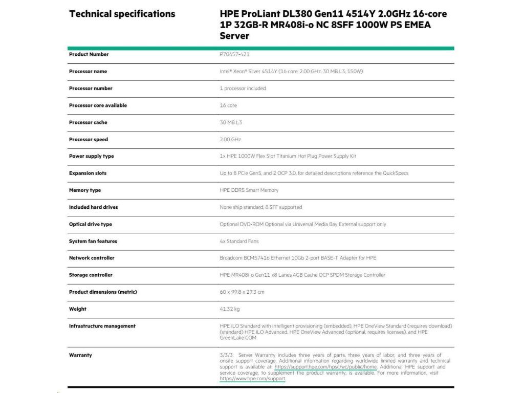 HPE PL DL380g11 4516Y+ (2.2G/24C) 2x32G (p64706) MR408i-o/4G 2x480G 2x1000W 2x10G-T Smart Choice
