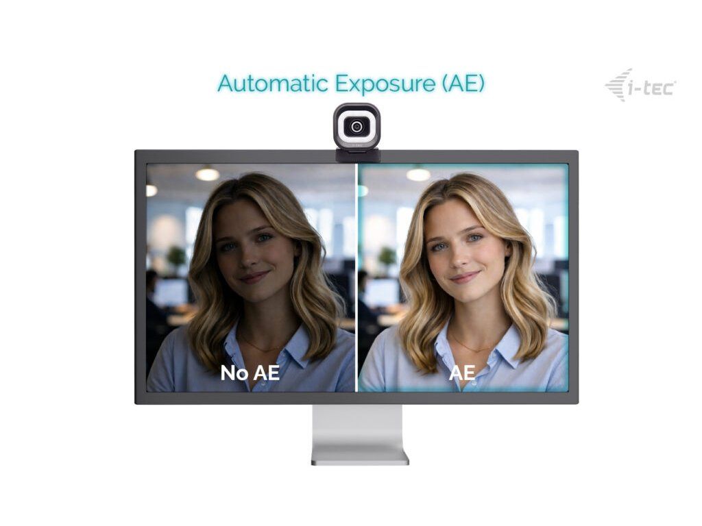Automatická expozice (Automatic Exposure – AE) se automaticky přizpůsobuje změnám světelných podmínek a upravuje jas a kontrast tak, aby byl snímaný objekt vždy dobře viditelný – bez přepalů nebo tmavých stínů a bez nutnosti ručního zásahu. •