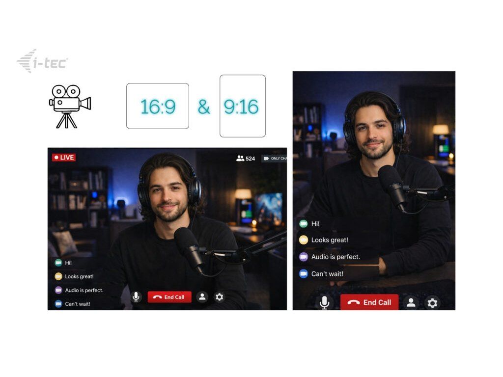 záznamu v poměrech stran 16:9 i 9:16 – ideální pro moderní tvorbu obsahu. Integrované nastavitelné