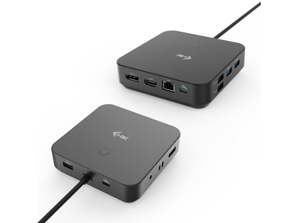 Dokovací stanici lze používat s napájecím zdrojem dodávaným s notebookem nebo lze napájecí zdroj zakoupit samostatně, například i-tec CHARGER-C112W/UK Alternativně můžete zakoupit produkt C31TRI4KDPDPRO100/UK, který již obsahuje napájecí zdroj. Vysoce výkonná kancelářská dokovací stanice USB-C, která podporuje až 3x externí monitor v rozlišení 4K. Stanice je kompatibilní s jakýmkoliv notebookem vybaveným portem USB-C, USB4 nebo Thunderbolt 3/4. 6x USB port, spolehlivé a rychlé připojení do podnikové sítě díky integrovanému LAN portu a podpora instalace za monitor, to vše z této dokovací stanice dělá ideálního společníka pro profesionály. Samozřejmostí je podpora nabíjení vašeho notebooku či tabletu, a to až 100 W. Integrovaný nejnovější protokol DP 1.4 DSC podporuje rovněž rozlišení 5K/60 Hz, což mohou ocenit i profesionální grafici, datoví analytici, filmoví editoři, případně milovníci videa ve vysokém rozlišení. Dokovací stanici si můžete zakoupit ve dvou variantách: • bez přiloženého USB-C nabíjecího adaptéru (produktový kód C31TRIPLE4KDOCKPDPRO) • s přiloženým adaptérem o výkonu 100 W (produktový kód C31TRI4KDPDPRO100/UK) Poznámka: operační systém macOS nepodporuje technologii více obrazového video přenosu Multi Stream Transport (MST), což znamená, že v případě připojení k macOS bude na obou připojených monitorech promítnut stejný obraz. • Připojte až tři externí monitory 4K/30Hz • Obnovovací frekvence až 360 Hz (při připojení k jednomu monitoru v rozlišení 1080p) • Power delivery: až 100 W • 1x HDMI, 2x DisplayPort++ • 3x USB 3.1, 1x USB-C 3.2 Gen2 (10 Gbps) a 2x USB 2.0 vám umožní snadné připojení vašich USB zařízení a periferií. Gigabitový Ethernet RJ-45 poskytuje spolehlivé, robustní a vysokorychlostní internetové připojení s podporou 10/100/1000 Mbps rychlostí • Kombinovaný jack pro audio a mikrofon na předním panelu • Zámek Kensington zajistí ochranu proti zcizení, zejména v prostředí sdílených kanceláří či veřejně přístupných míst • Vypínač dokovací stanice umožní maximální úsporu elektrické energie • Dokovací stanice podporuje držák VESA pro inteligentní vertikální instalaci za monitor s VESA podporou • Podporuje Windows 10, macOS, Android, iPadOS, ChromeOS a Linux • Dokovací stanici lze používat i bez připojeného napájecího adaptéru. V takovém případě budou vždy funkční video výstupy, síťový port LAN (RJ-45), audio/mic a oba porty USB 2.0. Porty USB 3.0 a datový port USB-C však při zapojení zařízení s vyššími energetickými nároky (například SSD disky, zejména pak jednotky NVMe) nemusí fungovat. V takovém případě může dojít k vypnutí dokovací stanice. Pro využití všech portů a dosažení maximální rychlosti přenosu dat doporučujeme používat dokovací stanici s připojeným napájecím adaptérem. Poznámka: V případě připojení k zařízení s operačním systémem Android bude dokovací stanice fungovat výhradně s připojeným napájecím adaptérem.