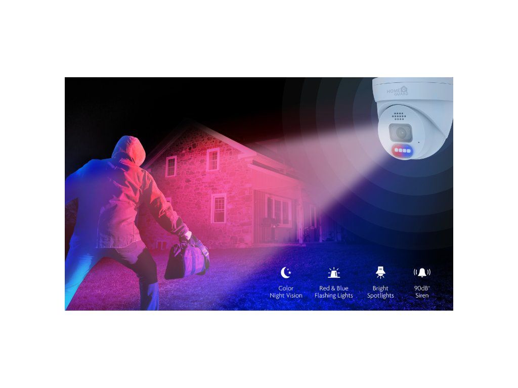 Noční vidění a obousměrný přenos zvuku Díky zabudovanému barevnému IR LED nočnímu přísvitu v každé kameře je možné je využívat nepřetržitě ve dne i v noci. Každá kamera obsahuje přisvětlovací IR LED diody s dosahem až 35 m, dále LED světla s dosahem až 25 m, a pro výstrahu modro-červené LED světla v ''policejním'' provedení - tuto funkci je možné deaktivovat. Navíc také přenos zvuku, obsahují mikrofon, reproduktor a funkci výstražné sirény. Díky těmto parametrům je možné použití kamer ve všech prostorách i s nulovou nebo sníženou viditelností.