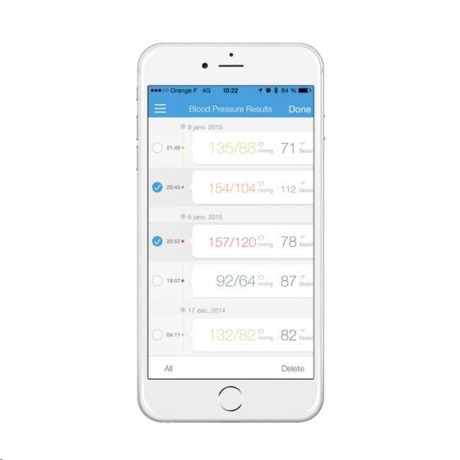 Môžete však bezdrôtovo a v priebehu niekoľkých sekúnd synchronizovať iHealth Track cez Bluetooth 4.0 s aplikáciou iHealth MyVitals vo vašom smartfóne a cloude výrobcu. Aplikácia zaznamenáva neobmedzenú históriu a umožňuje vám zdieľať výsledky s rodinou alebo lekárom.