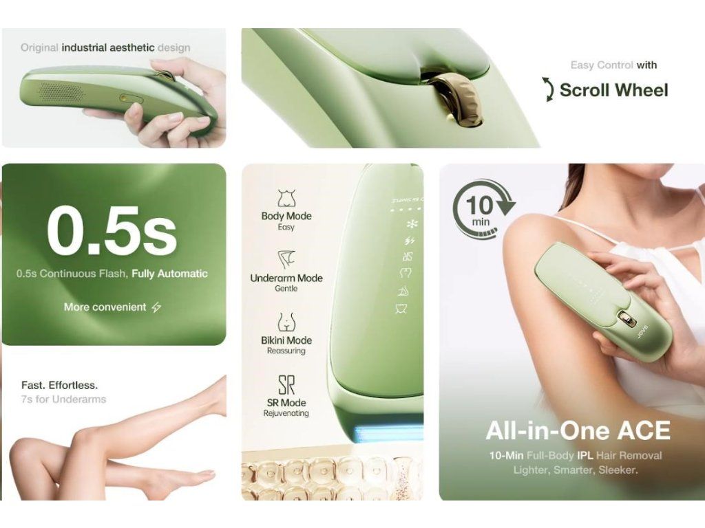 Rozviňte tajomstvo dokonale hladkej a žiarivej pokožky s JOVS Scroll, revolučným IPL prístrojom, ktorý spája ohromujúci dizajn, nekompromisný výkon a maximálne pohodlie. Prémiová značka JOVS, známa svojimi inováciami, prináša ďalšiu alternatívu ku klinickým ošetreniam, s ktorou dosiahnete profesionálne výsledky v súkromí a pohodlí vášho domova. Zabudnite na bolestivé a zdĺhavé procedúry a objavte epiláciu, ktorá je rýchla, účinná a príjemná.