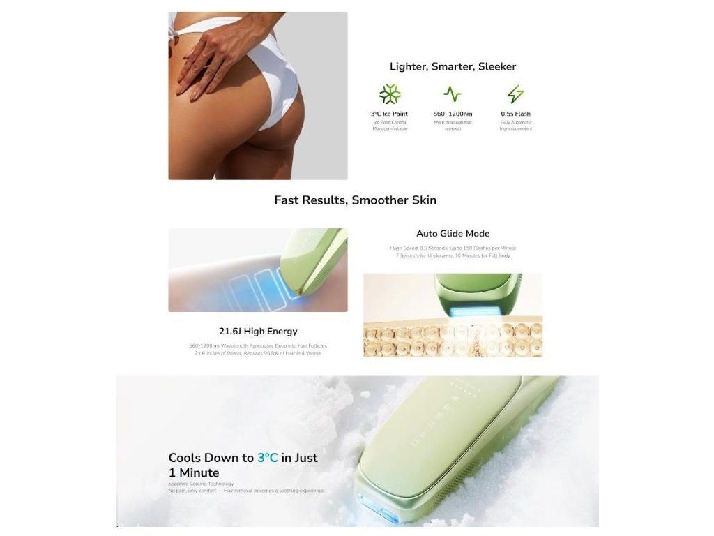 - Revolučné chladenie na 10 °C: Pokročilá chladivá technológia zaručuje naprosto bezbolestné a komfortné ošetrenie bez pálenia a podráždenia.