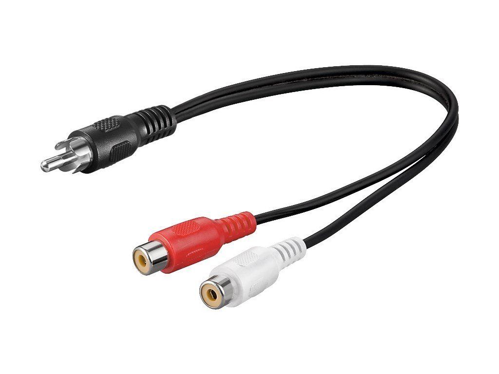 Kabel pro spojení dvou audio zařízení zvukovým signálem. Kabel 1x CINCH male - 2x CINCH female 20cm Konektory: - 1 x RCA cinch male - 2 x RCA cinch female - Délka:20cm