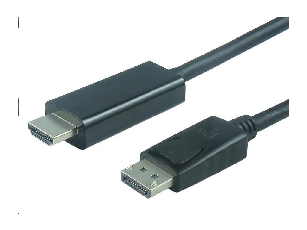 Kábel DisplayPort - HDMI funguje jednosmerne, kábel obsahuje elektronický prevodník DP -> HDMI, ktorý dokáže konvertovať signál len v smere DP -> HDMI.