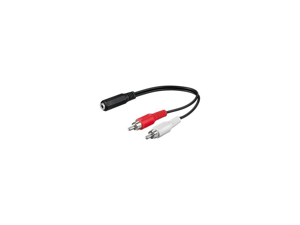 Kabel stereojack 3.5mm Female- 2x CINCH Male pro propojení audia, 20cm * konektory 3.5'' stereojack samička - 2x cinch samec * vhodný pro propojení TV, k mobilům, mp3 apod. * délka 20cm