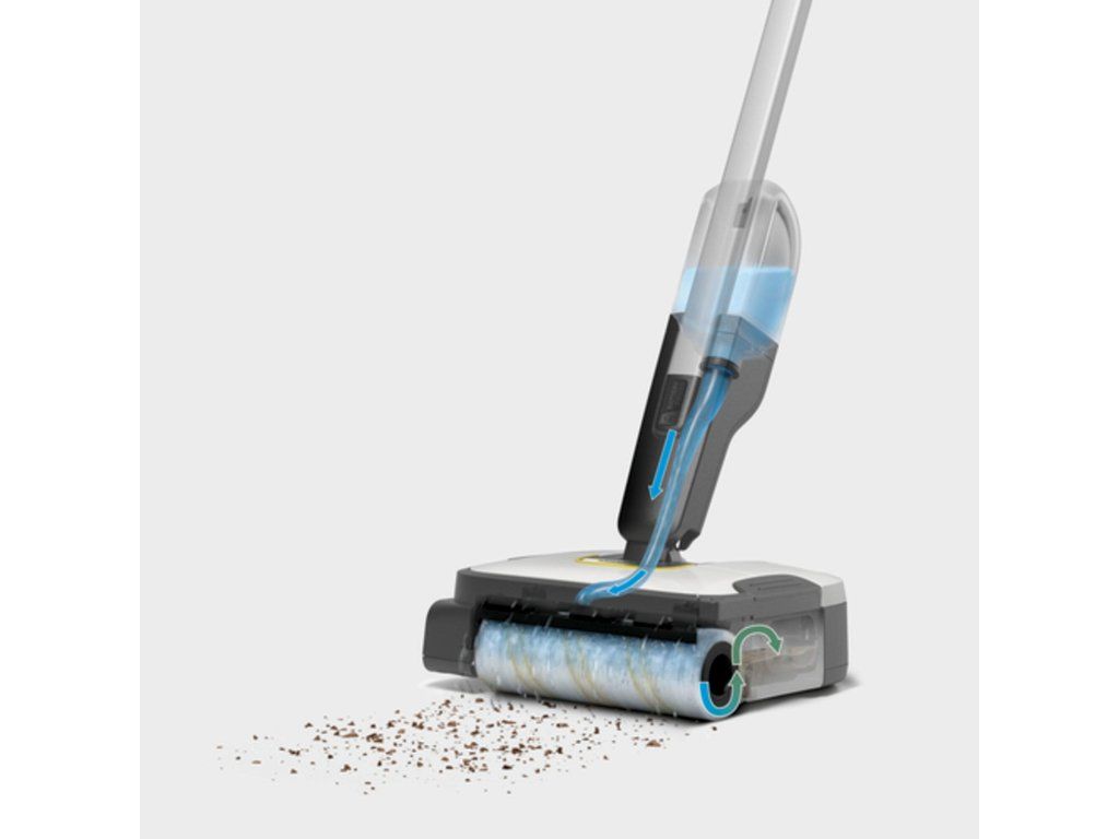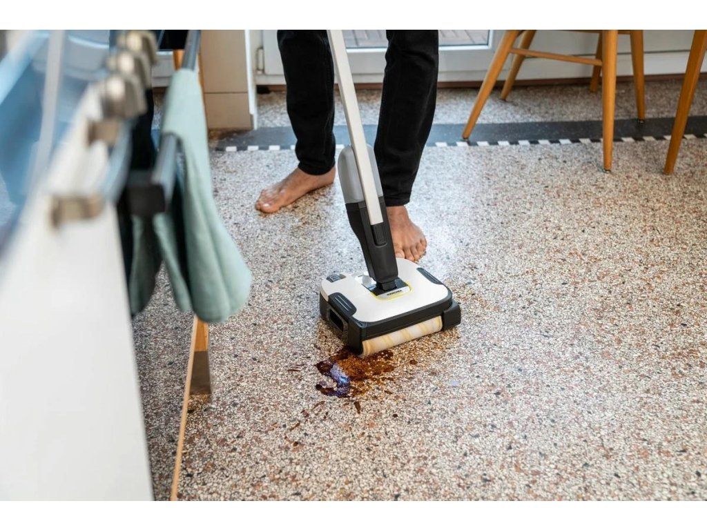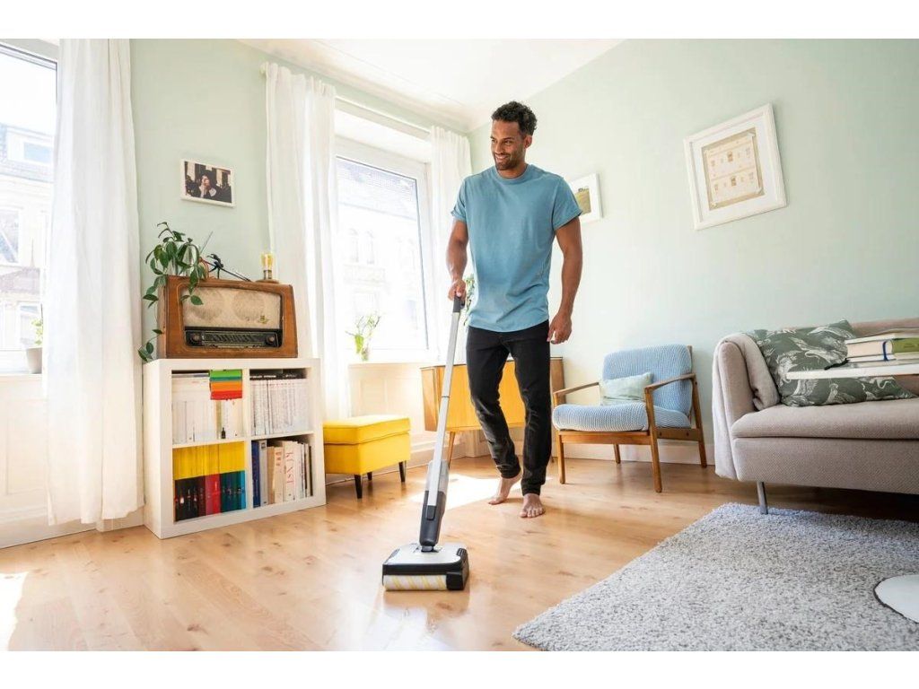 ** Čistič podláh Kärcher skracuje dobu čistenia až o 50 %, pretože bežné nečistoty z domácnosti možno odstrániť z tvrdých podláh v jednom kroku, bez nutnosti vysávania pred vytieraním.