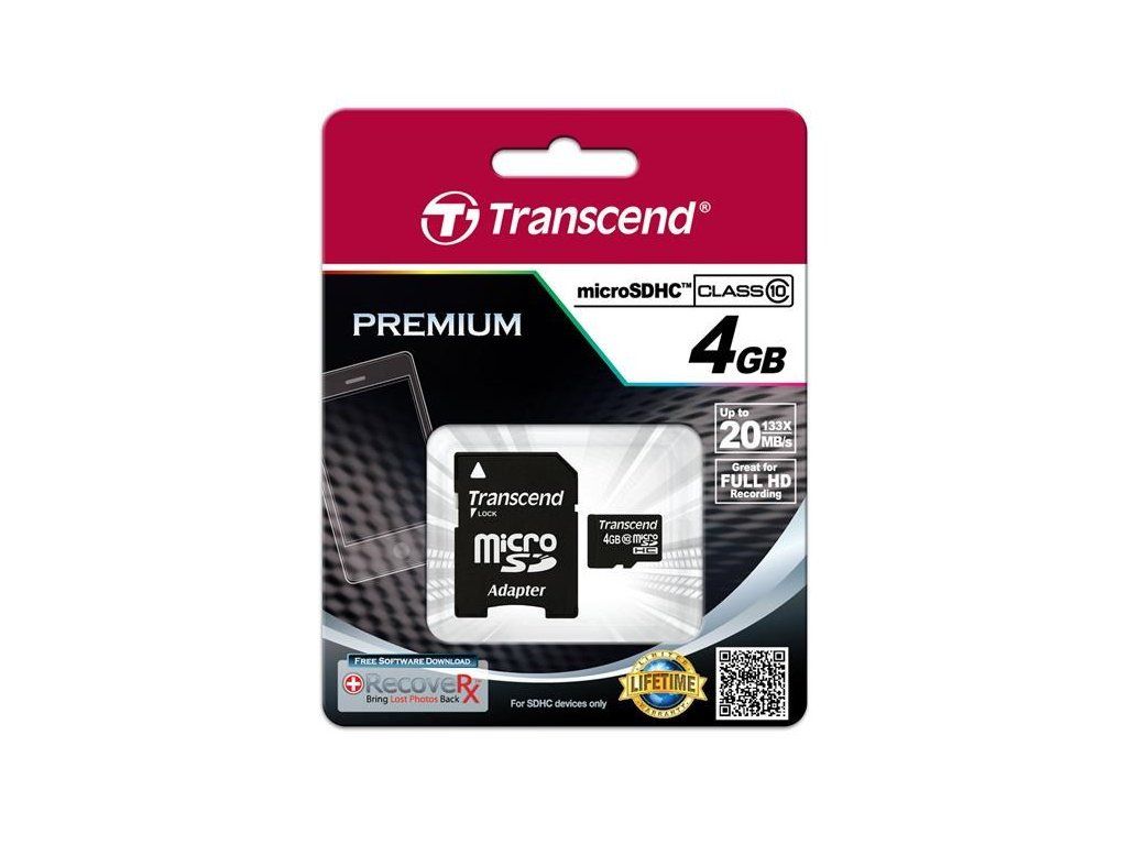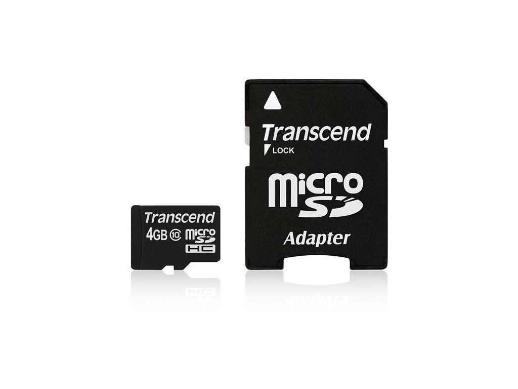 Karta TRANSCEND MicroSDHC 4GB Class 10 + adaptér