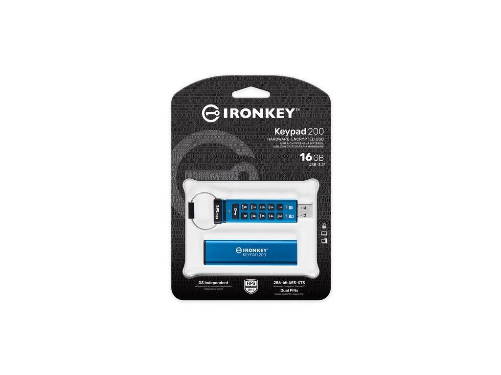 Řada Kingston IronKey™ Keypad 200 jsou na operačním systému nezávislé, hardwarově šifrované disky s rozhraním USB typu A a USB Type-C®* s alfanumerickou klávesnicí pro snadný přístup pomocí PIN kódu. KP200 využívá 256bitové hardwarové šifrování XTS-AES. Má také certifikaci FIPS 140-3 Level 3 (čeká na schválení) pro zabezpečení na armádní úrovni s vylepšeními, která dále zvyšují laťku ochrany dat. Jeho obvody jsou pokryty vrstvou speciálního epoxidu, která prakticky znemožňuje odstranění součástek bez jejich poškození. Tento houževnatý epoxid chrání polovodičové součástky před fzyickým útokem. Disk je navržen tak, aby neoprávněná manipulace byla ihned zřejmá a vlastníci tak byli upozorněni. Zahrnuje také ochranu proti útoku na heslo hrubou silou a ochranu BadUSB s digitálně podepsaným firmwarem. Alfanumerická klávesnice je potažena vrstvou polymeru, která klávesy chrání a zároveň neumožňuje analýzu otisků prstů na tlačítkách, čímž skrývá jejich použití. KP200 využívá vestavěnou dobíjecí baterii, kterou lze použít k odemknutí disku bez použití jakéhokoli softwaru a poté k jeho připojení k libovolnému zařízení, které podporuje velkokapacitní paměťové zařízení USB typu A. To uživatelům poskytuje největší přizpůsobivost na různých typech platforem a operačních systémů. Pomocí možností několika PIN kódů (správce/uživatel) lze klávesnici použít k nastavení snadno zapamatovatelného, ale těžko uhodnutelného alfanumerického PIN kódu pro správce a uživatele. Správce může obnovit PIN kód uživatele a poskytnout přístup k disku v případě, kdy dojde ke ztrátě PIN kódu uživatele nebo pokud se disk po dosažení maximálního počtu 10 pokusů o přihlášení uživatele uzamkne. Když jsou povolené PIN kódy správce i uživatele vyčerpány, disk KP200 uzamkne PIN kód uživatele po 10 neúspěšných pokusech o přihlášení. Pokud je PIN kód správce také zadán nesprávně 10krát za sebou, ochrana proti útoku hrubou silou vymaže disk, navždy zničí data a zresetuje disk. Disk také poskytuje dvě úrovně režimů jen pro čtení (nebo ochrany proti zápisu) – jedná se o globální režim, který může nastavit správce, a režim pro jednu relaci, který může nastavit uživatel. Režimy jen pro čtení mohou chránit disk před malwarem v nedůvěryhodných systémech. Kromě toho může správce načíst obsah a nastavit globální režim jen pro čtení, aby měl uživatel přístup k datům, ale nemohl provádět žádné změny.