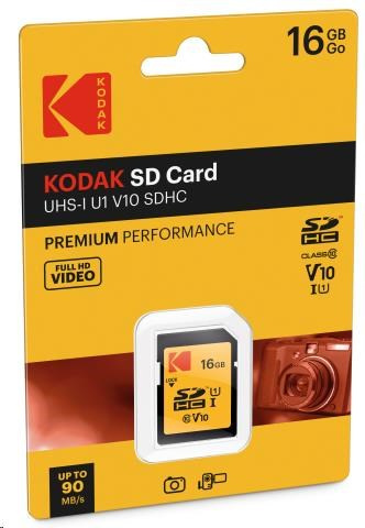 Pamäťová karta KODAK SD Premium Performance je navrhnutá na zaznamenávanie Full HD videa (1080p) a fotografií vo vysokom rozlíšení. Vďaka rýchlemu zápisu až 25 MB/s je ideálna na použitie v bridge a zrkadlových fotoaparátoch. Rýchlosť čítania až 90 MB/s umožňuje rýchly prenos dát do počítača alebo iných kompatibilných zariadení.