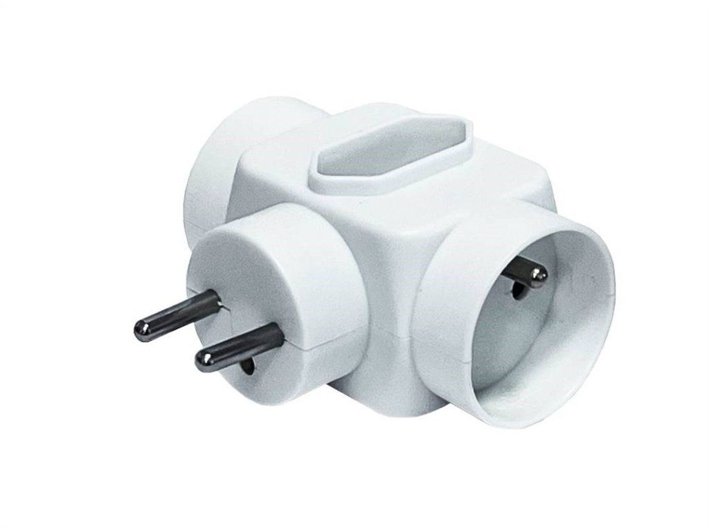 2x okrúhla zásuvka + 1x plochá zásuvka, 250 V~/ 2×16A 1x2,5A Detská ochrana-clonky.