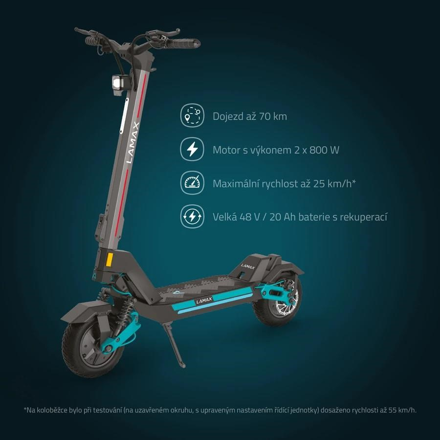 *Pri testovaní kolobežky (na uzavretom okruhu, s upraveným nastavením riadiacej jednotky) dosiahli rýchlosť až 55 km/h.