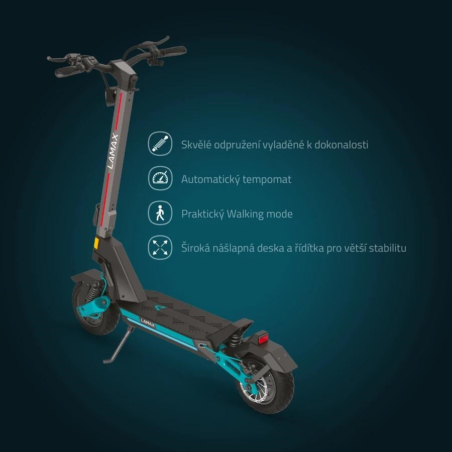 Záleží len na tom, či sa prepletáš mestským labyrintom alebo brázdiš náročnejší terén, LAMAX eTank SA70 ťa všade podrží. Jej telo v modernom industriálnom dizajne je pevné, stabilné a odolné. V každom detaile vidíš dokonalú kvalitu spracovania. Kolobežka unesie až 150 kg záťaže, a to bez problémov aj do kopca vďaka silným motorom o výkone 2×800 W. Môžeš ale zvoliť medzi 2 výkonnostnými režimami, úsporný využíva motory len na 60 %, i tak sa parádne prejdeš, alebo to rozbehni naplno. Pri jazde z kopca alebo brzdení rekuperácie vracia šťavu späť do vysokokapacitnej lítiovej batérie 48 V/20 Ah, ktorá je vybavená BMS inteligentným systémom, ktorý ju chráni pred prehrievaním alebo napríklad podbitím. Dojazd je tak ideálnych podmienkach až 70 km. Na výber máš zo 4 rýchlostných stupňov, pričom maximálka činí 25 km/h, čo už pekne sviští a po meste je to ideál.