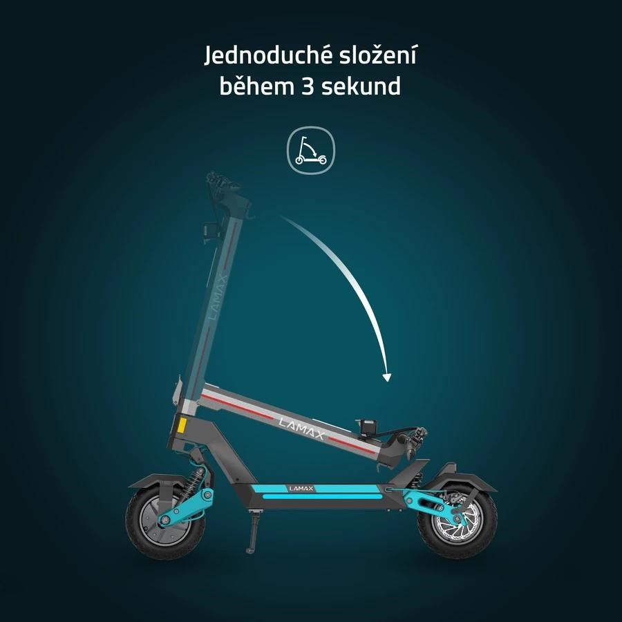 Všetky údaje o jazde uvidíš za každého počasia alebo pokojne aj v noci na veľkom LCD displeji, určite ti preto neunikne, koľko šťavy zostáva alebo akú máš rýchlosť. Hravo cez neho kolobežku pomocou 3-miestneho PIN kódu aj zabezpečíš proti krádeži. Sú úseky, kde sa môžeš tešiť okolím a neriešiť rýchlosť, tú hlídka tempomat. Keď je rýchlosť konštantná, automaticky sa aktivuje. Bezpečnú jazdu za akýchkoľvek podmienok podporuje LED osvetlenie celej kolobežky, kedy vďaka LED svetlu, bočným farebným svetlám a zadnému integrovanému budeš neprehladnuteľný. Keď ide s tebou kamoš a kecáte alebo sa ti nechce do prudkého kopca kolobežku tlačiť, aktivuj Walking Mode, ktorý popojazdí pomalým tempom max. 6 km/h. Kolobežka ťa zachráni aj vtedy, keď máš vybitý mobil, stačí využiť USB vstup na nabíjanie. Ak potrebuješ svoju mašinu preniesť alebo uložiť, počas 3 sekúnd ju pomocou inovatívneho mechanizmu zložíš. Len počítaj s tým, že váži 35 kg.