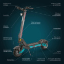To nie je obyčajná jazda, pri tejto takmer lietaš, pretože každá časť kolobežky je do detailu premyslená. Už len veľké 10,5“ vzduchom plnené kolesá s?extra vyztuženým plášťom odolným voči defektom zaručujú pohodlnú jazdu aj po dlažobných kockách, a perfektnú stabilitu a priľnavosť, ktorú oceníš najmä pri brzdení, ale aj v zákrutách. Jazdný komfort ešte podporuje predné aj zadné odpruženie spolu s vyztuženým zadným blatníkom, ktorý nevydáva rušivé zvuky. Ešte dôležitejšie je bezpečnosť, o ktorú je postarané vďaka ochrane proti nechcenému rozjazdu, čo znamená, že elektromotor sa aktivuje až po dosiahnutí určitej rýchlosti. Samozrejmosťou je aj trojitý brzdný systém, kde kvalitné zadné a predné kotúčové brzdy spolu s elektronickou brzdou skracujú brzdnú vzdialenosť. Dokonalý pôžitok z jazdy umocňujú rozšírené riadidlá, ktoré spolu s dostatočne širokou a dlhšou nášľapnou platňou poskytujú dokonalú jazdnú stabilitu a bezpečnosť.