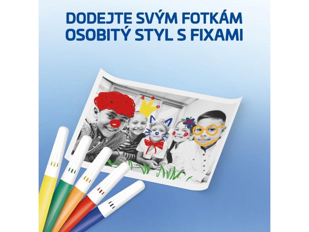 Súčasťou balenia sú aj farebné fixky, s ktorými si deti môžu svoje vytlačené fotky dotvoriť podľa vlastnej fantázie.