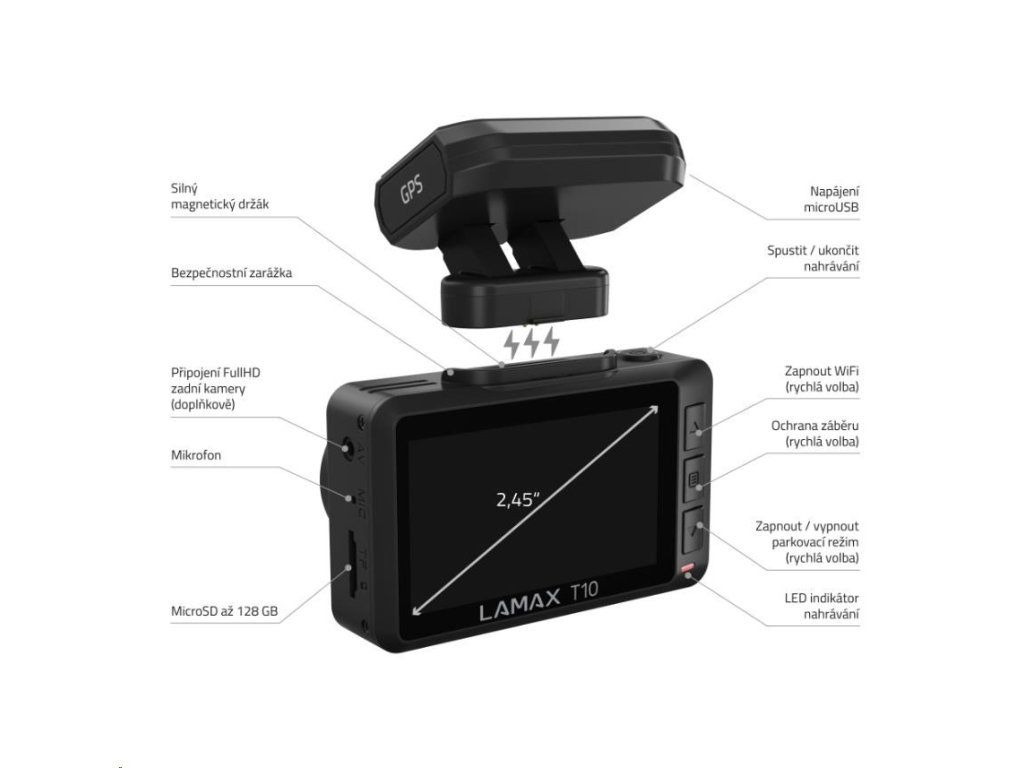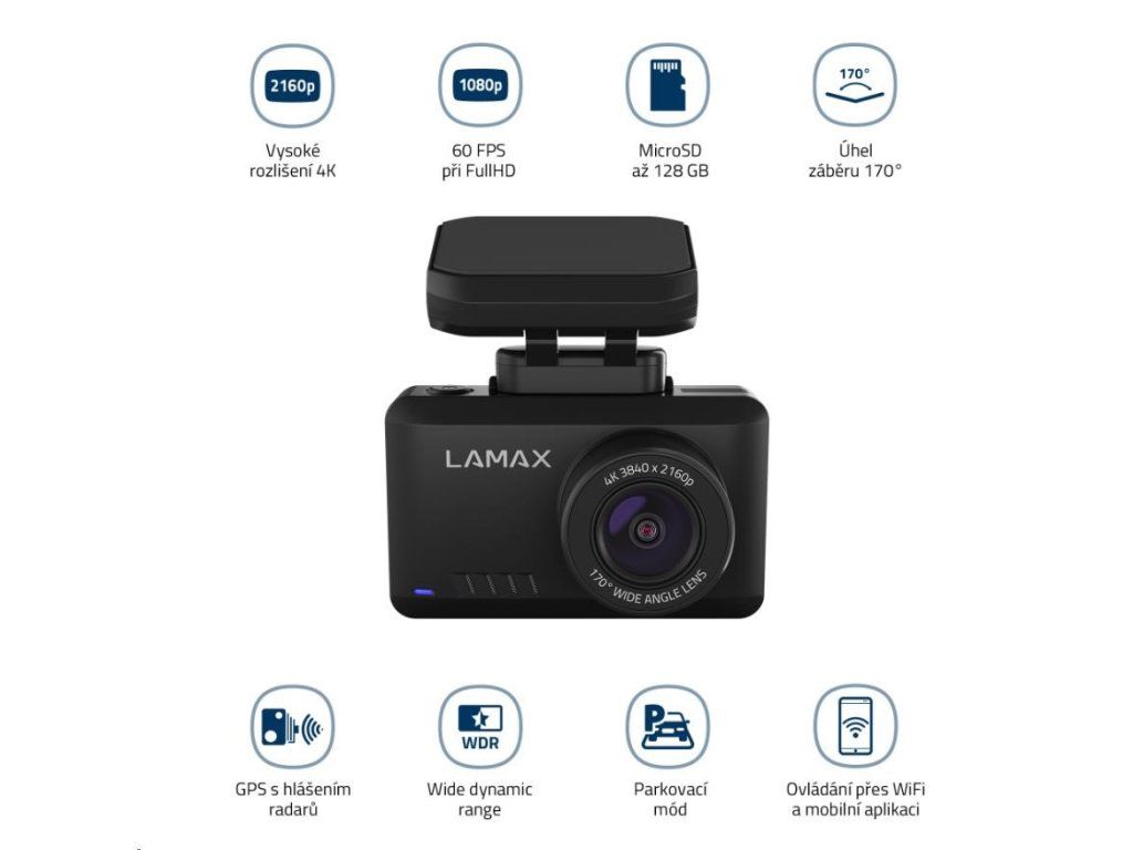LAMAX T10 4K GPS (s hlásením radarov) 4K ochrana pred spormi aj radarmi Zachyťte každý meter svojej jazdy a vyhnite sa náhodám. Video je jednou z najúčinnejších zbraní, ako dokázať svoju nevinu pri zrážke a LAMAX T10 vám do rúk dá celý arzenál dôkazov. Kamera nahráva priamo vo 4K a je užitočná, aj keď sa na ceste nič nedieje. Databáza radarov vám ušetrí peniaze za pokuty a vďaka magnetickej drziacej sponke je okamžite pripravená vyraziť. Ostrejšie ako zrak, vo dne v noci LAMAX T10 vás podrží vo všetkých podmienkach. Či už je práve jasno, prší alebo je úplná tma. Špičkový čip stojí za vždy jasným 4K videom pri 30 snímkach za sekundu bez šumu a zkreslenia. Objektív dokáže zachytiť dostatok svetla aj na zatemnenej ceste a s technológiou WDR je odolný voči oslneniu a odleskom. Vďaka širokouhlému objektívu kamera zachytáva všetko, čo sa deje pred autom v uhle 170 ° – máte teda pokryté svoj jazdný pruh, protismer i okolie. Zastavte nečakané pokuty S LAMAX T10 vás už úsekové meranie ani statické radary neprekvapia. Kamera má zabudovanú GPS a pravidelne aktualizovanú databázu miest, kde hrozia pokuty. Vždy vás tak na displeji aj pípaním včas upozorní, že sa blíži nebezpečenstvo pre vašu peňaženku a bolo by dobré spomaliť. Rýchlosť si môžete tiež zobrazovať vodotlačou vo videu a preukázať tak, že ste jazdili v súlade s pravidlami. Bezpečnosť aj komfort s vylepšeným držiakom Náš nový magnetický držiak nerobí medzi jednoduchým používaním a maximálnou ochranou kompromisy. Magnety sme použili rovno dva – kamera drží ako pribitá, ale stále ju môžete v priebehu sekundy nacvaknúť alebo odcvaknúť. Magnety navyše zapadnú do bezpečnostnej zarážky na tele kamery, čo zvyšuje odolnosť uchytenia napríklad pri jazde po rozbitej ceste. Veľký displej = pohodlné ovládanie Kameru do auta sme vybavili kvalitným 2,45“ IPS displejom s vysokým jasom – ľahko si tak prehráte natočené videá alebo upravíte nastavenia. Menu je kompletne v slovenskom jazyku a ovládanie je vďaka 4 tlačidlám úplne intuitívne. Pre ešte väčšie pohodlie môžete zvoliť aj ovládanie kamery cez telefón vďaka zabudovanej WiFi. Viac režimov, užitočné príslušenstvo FullHD v 60 snímkach za sekundu. To sa hodí hlavne na plynulé zachytenie rýchlo prebiehajúcich aut, alebo ak si chcete vychutnať spomalený záber. Okrem užitočných funkcií vám ku kamere zároveň pošleme aj všetko, čo môžete potrebovať – adaptér do autozapaľovača s extra USB portom na nabíjanie ďalšieho zariadenia alebo kvalitné držiaky na káble. Majte oči aj vzadu Pre maximálnu ochranu si k LAMAX T10 môžete dokúpiť aj zadnú FullHD kameru. Získať s ňou dôkazy aj v prípade, že vás niekto nabúra zozadu. Montáž zadnej kamery je jednoduchá, stačí ju prilepiť na zadné sklo a prepojiť kábel s prednou kamerou. Pri zapojení zadnej kamery dokáže predná kamera natáčať v rozlíšení maximálne 2.5K – aj tak zostáva video plné dôležitých detailov. Detailné 4K/30 FPS 30 snímok za sekundu zabezpečí, že aj rýchle objekty budú na kamere ostré a 4K sa postará o bezkonkurenčnú úroveň detailov. Extrajtechné Full HD/60 FPS Niekedy sa na plynulé zábery hodí viac snímok za sekundu – napríklad na zachytenie rýchlej situácie na ceste. T10 dokáže FullHD aj pri 60 FPS. Ochrana pred radarmi Kamera vás na displeji aj zvukovo včas upozorní na blížiaci sa statický radar alebo úsekové meranie, takže vám pomôže vyhnúť sa pokutám. Širokouhlý 170° záber Širokouhlý objektív zabezpečuje, že autokamera zachytáva všetko vo vašom jazdnom pruhu, protismer i okolo cesty. Ste tak maximálne chránení. Moderný kodek H.265 Kodek H.265 ušetrí veľa miesta na pamäťovej karte. 4K video efektívne stlačí bez straty kvality. Pri nižších rozlíšeniach kamera používa štandardný kodek H.264. Podpora až 128GB karty Staré a nepotrebné zábery sa síce mažú automaticky, ale aj tak sa hodí mať dostatok priestoru na všetky záznamy. V balení nájdete aj čítacie zariadenie microSD kariet pre počítač. Vylepšený magnetický držiak LAMAX T10 drží na mieste dva magnety a bezpečnostná zarážka, ktorú má kamera na tele – ideálna kombinácia magnetického komfortu a bezpečnosti. Intuitívne ovládanie cez 2,45“ displej Menu v kamere je kompletne v českom jazyku a ovládanie cez jasný 2,45“ IPS displej a 4 tlačidlá zvládne každý. Používanie vás skrátka bude baviť. Prídavná zadná kamera Chráňte si chrbát so zadnou FullHD kamerou. K LAMAX T10 si ju môžete kedykoľvek dokúpiť a byť bez starostí. Ovládanie cez mobilnú apku Vďaka zabudovanej WiFi môžete kameru pohodlne ovládať aj z telefónu. Bezdrôtový prenos videí je samozrejmosťou a nastavenia upravíte raz-dva. Parkovací režim Kamera pohlídá aj parkujúce auto. Parkovací režim spustí nahrávanie, ak G-senzor zaznamená náraz – napríklad keď do vás niekto omylom nacúva. Adaptér s extra USB V balení vám pošleme adaptér do autozapaľovača s USB portom navyše, aby ste si mohli nabiť napríklad telefón. Parametre LAMAX T10 4K GPS Rozlíšenie videa prednej kamery 4K (3840×2160) @ 30FPS (interpolované)2.5K (2560×1440) @ 30FPS (max. rozlíšenie pri pripojení zadnej kamery)FullHD (1920×1080) @ 60FPSFullHD (1920×1080) @ 30FPS Rozlíšenie videa zadnej kamery FullHD (1920×1080) @ 30FPS Uhol záberu 170° Formát videa MOV, kompresia H.265/H.264 Rozlíšenie fotografie 16 Mpx Formát fotografie JPG Zvuk Vstavaný mikrofón s možnosťou vypnutia jedným tlačidlom Veľkosť displeja 2,45“ Pamäť MicroSD až 128 GB Konektivita WiFi, MicroUSB Držiak Magnetický s 3M samolepkou Funkcie GPS s hlásením radarov (s možnosťou vypnutia), WiFi s aplikáciou, parkovací režim, WDR, zapnutie/vypnutie vodo