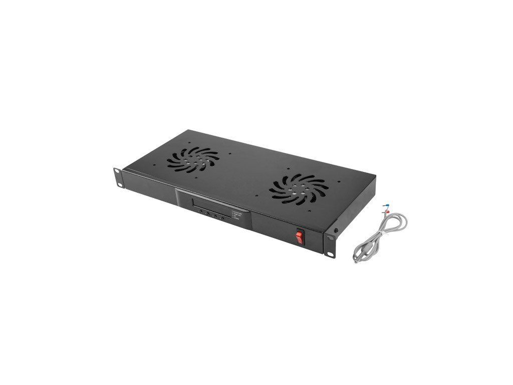 Popis produktu Horizontální ventilační panel Lanberg 1U 230V s LCD displejem a 2 ventilátory + termostatem, určený pro 19'' skříně. Vlastnosti: - Vnitřní vybavení: - Vhodné pro instalaci do všech 19'' serverových skříní, - Nastavení teploty termostatem prostřednictvím LCD panelu, - Jmenovité napětí: 230 V, 50 Hz, - 2 ventilátory, - Výška 1U, - Rozměry (délka x šířka x výška): 192 x 483 x 44,45 mm, - Barva: černá . Balení obsahuje: - Napájecí kabel (IEC C13 - Uni-Schuko), - kabel k teplotnímu čidlu, - 4 šrouby M6 s maticemi pro montáž RACK.