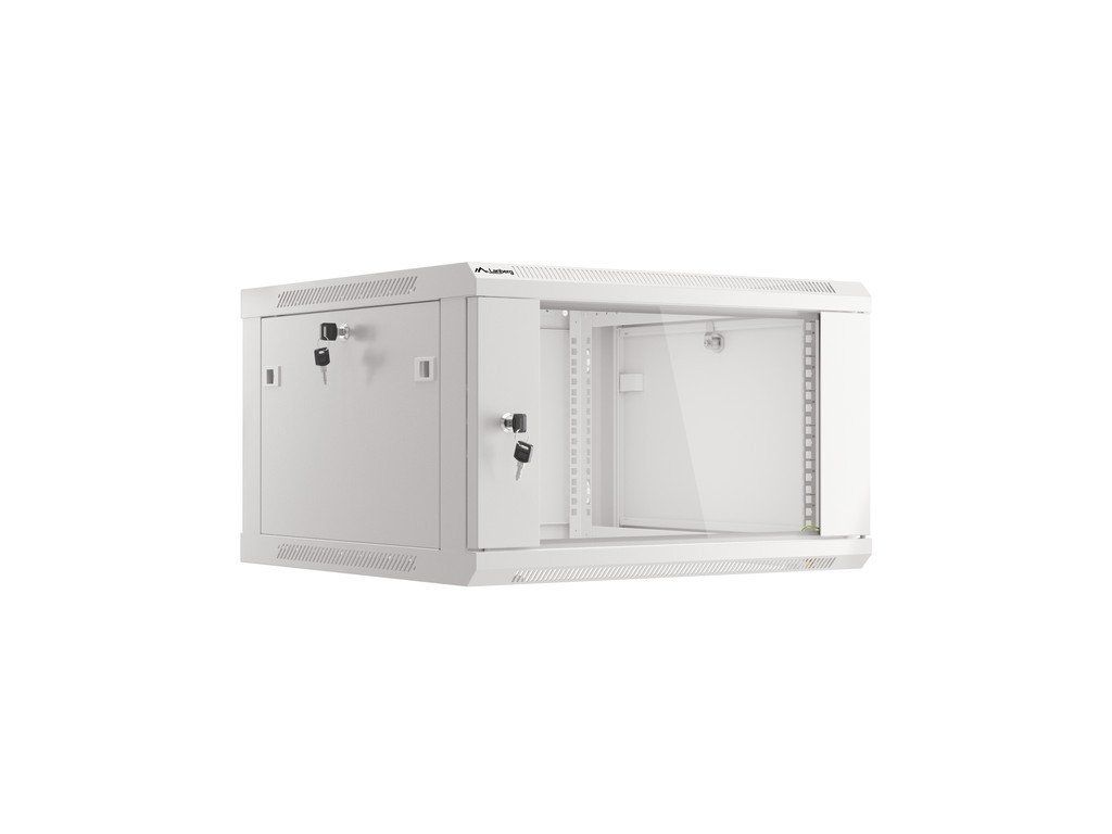 LANBERG 19'' RACKOVÁ SKRIŇA PRO MONTÁŽ NA STENU 6U/600X600 (FLAT PACK) S PROSKLENÝMI DVERAMI ŠEDÁ V2