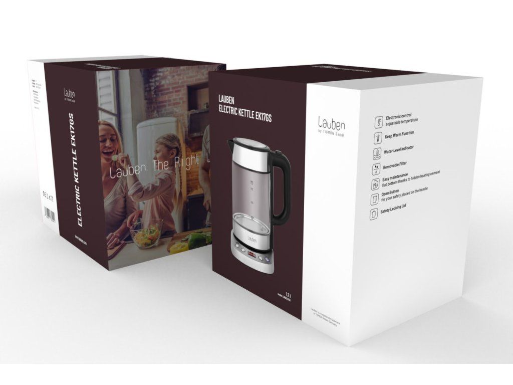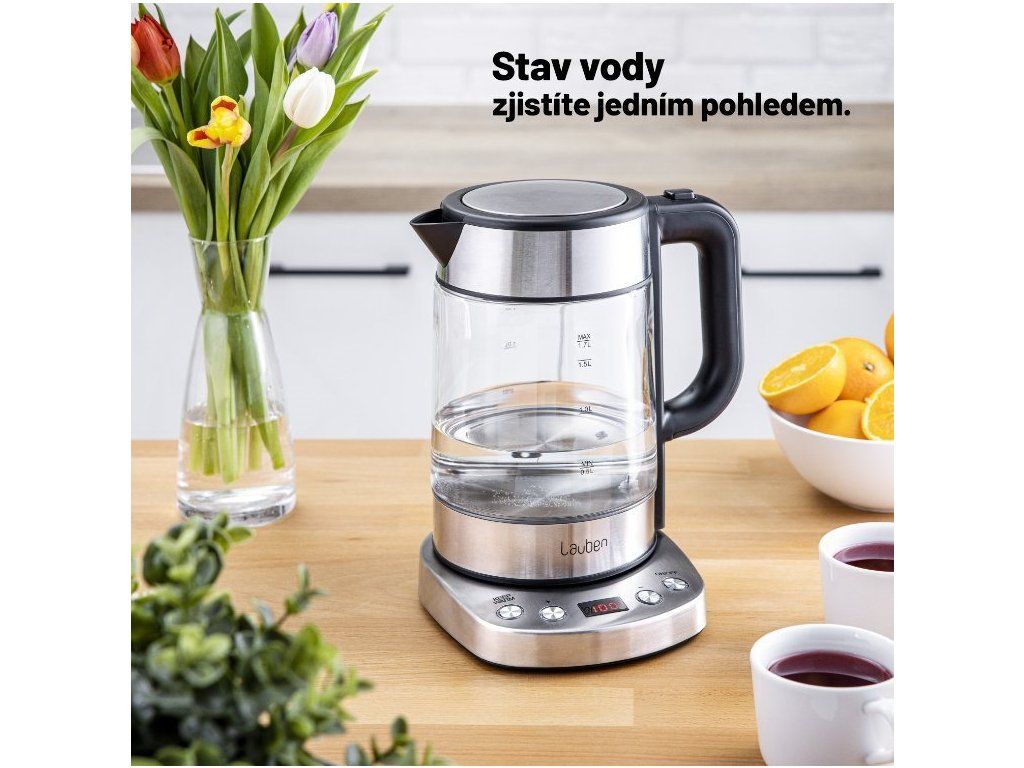 Lauben Electric Kettle EK17GS Teplota presne, ako má byť Lauben Electric Kettle EK17GS je dizajnová rýchlovarná konvica s nastaviteľnou teplotou ohrevu vody a Keep Warm funkciou. Možnosť nastavenia teploty vody v kuchyni určite oceníte. Potrebujete zalejeť zelený čaj? Už nikdy nemusíte čakať, až voda vychladne, stačí si preferovanú teplotu zvoliť na prehľadnom LCD displeji. Konvica je navrhnutá do rovnakého dizajnu ako obľúbená Lauben konvica EK17WS s tým rozdielom, že telo je vyrobené zo skla. Predstavuje teda to najlepšie z praktickej aj dizajnovej stránky. Aj u tejto konvici nájdete ocenené One-Touch ovládanie, obľúbený tvar nálevky a ovládanie teploty tak, aby neprišla nazmar ani sekunda elektrickej energie, ohrev sa zastaví pár stupňov pod požadovanou teplotou a na zvyšok „dojde“. Teplotu volíte v rozmedzí 60-100 °C po desiatich stupňových intervaloch. V konvici Lauben ohrejete až 1,7 l vody naraz. Jej aktuálne množstvo vždy poznáte vďaka stupnici na skle. Veko konvice je vybavené bezpečnostnou poistkou proti rozliatiu a otvárate ho jednoducho, pomocou tlačidla umiestneného na držadle. Na základni konvice nájdete prehľadný LCD displej, ktorý zobrazuje aktuálnu teplotu vody v konvici. Nespornou výhodou Lauben Electric Kettle je vyberateľný umývateľný filter, a tým aj nižšie riziko tvorby vodného kameňa. Konvica je veľmi jednoduchá na čistenie a údržbu a vďaka integrovanému priestoru pre kábel vám nebude na kuchynskej linke prekážať. Dokonalý čaj či káva bez kompromisov Ak ste milovníkom čaju, určite viete, že každý druh potrebuje špeciálne zaobchádzanie, teda inak horúcu vodu. S Lauben Electric Kettle si vďaka integrovanému termostatu nastavíte teplotu presne tak, ako potrebujete. Teplotu nastavujete v rozmedzí 60-100 °C, po desiatich stupňových intervaloch – môžete si ju teda nastaviť úplne tak, ako potrebujete, netreba sa spoliehať na prednastavené stupne. Okrem kávy a čajov všetkých druhov tak s konvicou Lauben ohrejete vodu napríklad aj do detskej kaše, kde potrebujete vodu nižšej teploty. Čaj Teplota vody Doba luhovania Čierny 100 °C 3–5 min Zelený 60–80 °C 1–3 min Biely 70–80 °C 2–6 min Ovocný 100 °C 8–10 min Oolong 80–90 °C 3–6 min Puerh 80–100 °C 3–5 min Rooibos 95–100 °C 3–6 min Maté 80 °C 5 min Lapacho 100 °C 15–20 min Bylinný 100 °C 8–12 min Keep Warm funkcia So konviciou Lauben máte horúcu vodu kedykoľvek po ruke. Vďaka Keep Warm funkcii totiž dokáže vodu uchovávať na presne nastavené teplote až 2 hodiny. A vám tak odpadnú starosti aj v momente, keď si niektorý z členov vašej domácnosti želá kávu „až neskôr“. Vodu nemusíte znova zohrievať, a šetrite tak energiu aj svoj čas. Jednoduchá údržba a čistý dizajn Tepelné teleso konvice je skryté, čím sa znižuje riziko tvorby vodného kameňa a konvica je ľahšie sa udržiavať a čistiť. Pre kábel, ktorým je konvica pripojená do elektrickej siete, je vyhradený priestor na dne základne, takže vám na kuchynskej linke nikde netrčí ani nezavadzia. Lauben Electric Kettle je vytvorená v čistom minimalistickom dizajne a bude sa vo vašej kuchyni pekne vynímať. Vlastnosti Presný termostat Pomocou tlačidiel na základni si zvolíte požadovanú teplotu, od 60 °C do 100°C, v desiatich stupňových intervaloch. Ergonomická nálevka Tlak vody tak akurát, aby voda nikde netiekla a bezpečne tiekla tam, kam má. Omyvateľný filter Filter môžete z konvice kedykoľvek vybrať a umyť, zabránite tak tvorbe vodného kameňa. Otváracie tlačidlo Otváracie tlačidlo je umiestnené na držadle, konvica sa tak ľahko otvára a manipulovať s ňou môžete jednou rukou. Bezpečnostné veko Veko konvice je vybavené bezpečnostnou poistkou, ktorá bráni rozliatiu vody. 360° otočná základňa Konvicu môžete presunúť kamkoľvek a otáčať akýmkoľvek smerom. Praktické miesto na kábel Na dne základne je priestor pre kábel, ktorý nijako na kuchynskej linke neprekáža. Keep Warm funkcia Konvica udrží vodu na požadovanej teplote po dobu 2 hodín. Bezpečnosť nadevše Konvicu sme vybavili poistkou proti vareniu nasucho aj proti prehriatiu. Parametre Príkon 220 V, 50/60 Hz Výkon 2200 W Objem 1,7 l LCD displej Áno Nastavenie teploty Po 10 stupňoch Otváranie jednou rukou Áno Funkcia Keep Warm Áno Filter Áno Obsah balenia Rýchlovarná konvica Lauben Electric Kettle EK17GS Základňa s káblom
