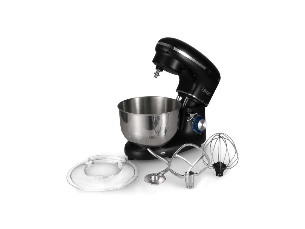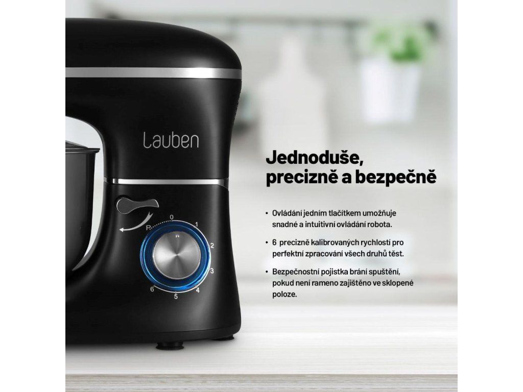 Kuchynský robot Lauben Kitchen Machine 550BC klame telom. Nie je žiadny obor, zato jeho výkonný motor so silou 1400 W si poradí aj s najtuhším cestom. Rovnako ľahko tak pripravíte piškótové cesto alebo chlebové. Záťaž pomáhajú prístroju zvládať celokovové prevody a použitý materiál zaručuje dlhú životnosť. Akonáhle sa pustíte do varenia, nie je potrebné trocháriť, misa z prémiovej nerezovej ocele pojme až 5,5 l. Bez problémov tak pripravíte aj hostinu pre rodinu alebo stretnutie s priateľmi.