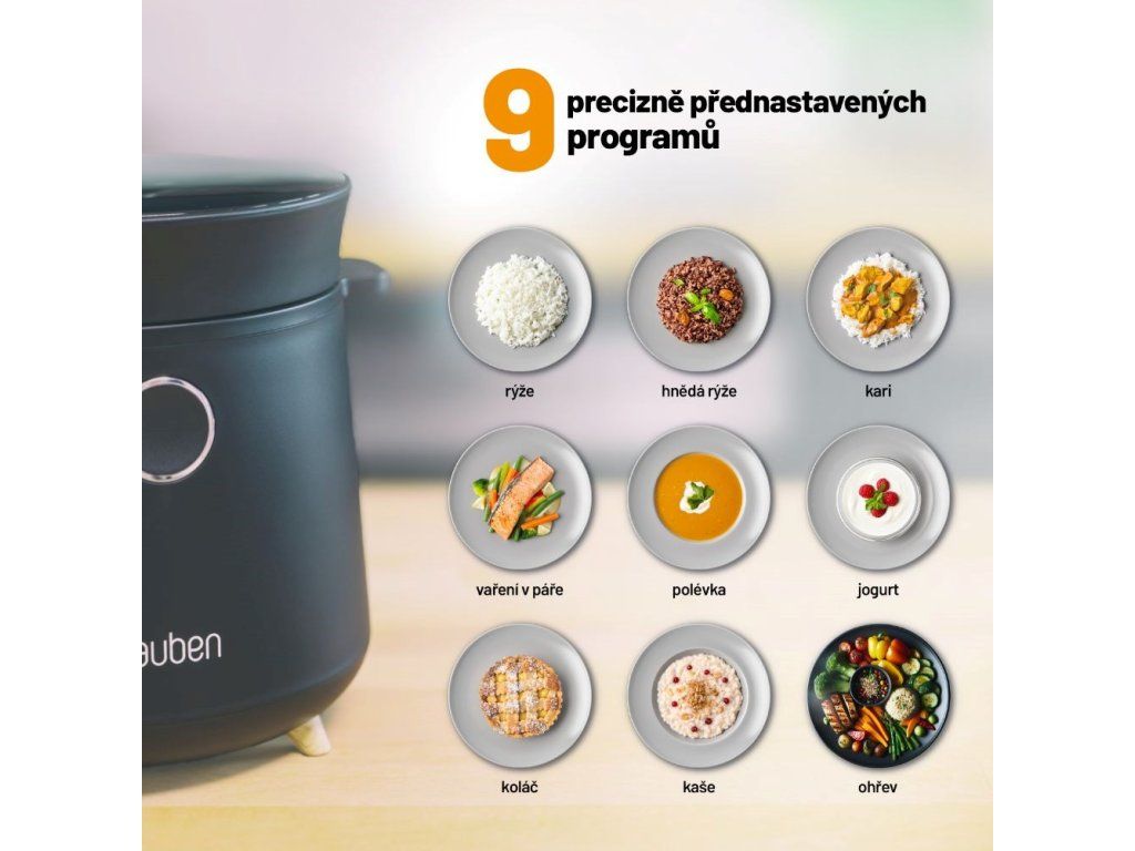 Rýžovač disponuje 9 prednastavenými programami na prípravu ryže, ako aj ďalších jedál. Stačí stlačiť funkciu: ryža, hnedá ryža, polievka, kaša, zákusok, jogurt, kari, varenie v pare alebo ohrev. Varenie tak zvládne aj začiatočník.
