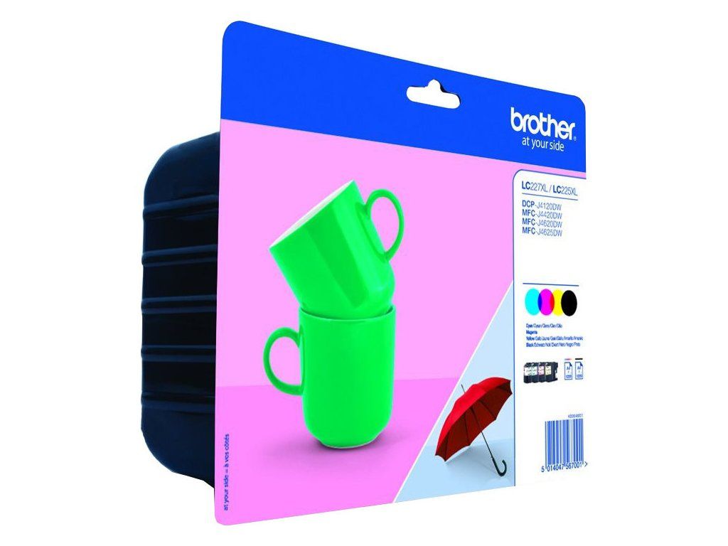 Originální cartridge Brother LC-227XLVALBP, inkoustová sada obsahuje multipack Bk+CMY barvy: černá, modrá, žlutá, červená výtěžnost každé cartridge : 1200 stran stran při 5 % standardním pokrytí Pro tiskárny: Brother DCP-J4120DW, MFC-J4420DW, MFC-J4620DW a MFC-J4625DWDodatočné parametre