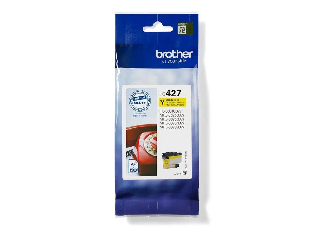 Originální inkoustová kazeta Brother LC427Y - žlutá *LC427Y vytiskne 1500 stran na základě normy *Vysoce kvalitní originální inkoustová kazeta Brother ISO/IEC 24711 *Originální inkoustové kazety Brother jsou přísně testovány, aby perfektně tiskly a šetřily váš čas i peníze *Použitím originální inkoustové kazety Brother LC427Y chráníte vaši tiskárnu *Inteligentní konstrukce umožňuje plný přehled o množství inkoustu v kazetě Hledáte kazetu, která nabízí skvělé výsledky při každém tisku? Inkoustová kazeta Brother LC427Y s vlastnostmi odolnými proti blednutí barev zaručuje plynulý, spolehlivý a vysoce kvalitní tisk. Naše dokonale vyvážené inkousty zajistí, že vaše tiskárna bude fungovat co nejlépe. Společnost Brother zohledňuje dopad na životní prostředí v každé fázi životního cyklu inkoustových kazet a snižuje množství odpadu na skládkách. Veškerý náš hardware a inkoustové kazety jsou vyrobeny tak, aby měly co nejmenší dopad na životní prostředí.