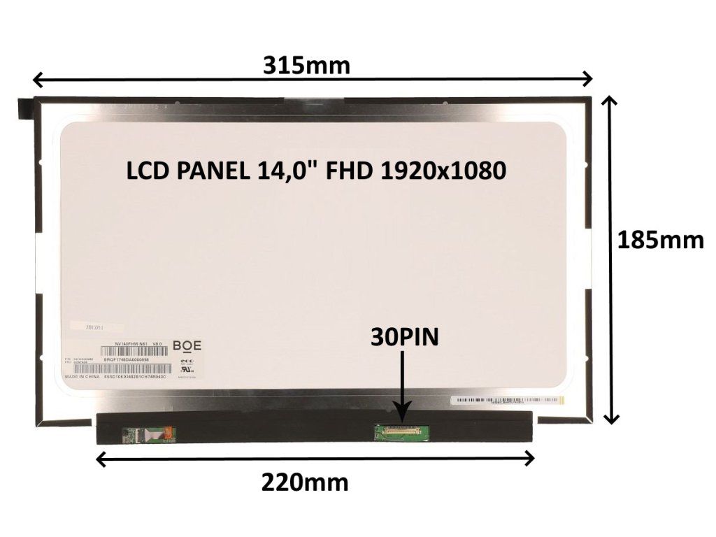 LCD PANEL 14,0'' FHD 1920x1080 30PIN MATNÝ IPS / BEZ ÚCHYTOV