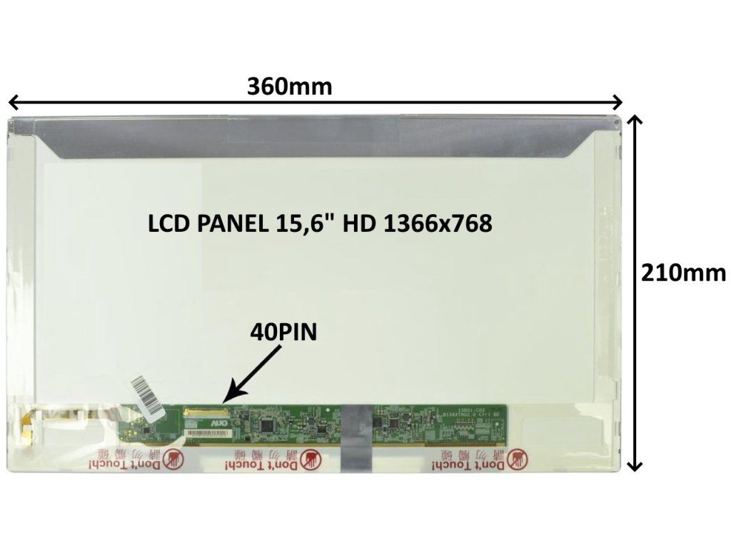 LCD PANEL 15,6'' HD 1366x768 40PIN LESKLÝ / SKRUTKOVANIE Z BOKOV