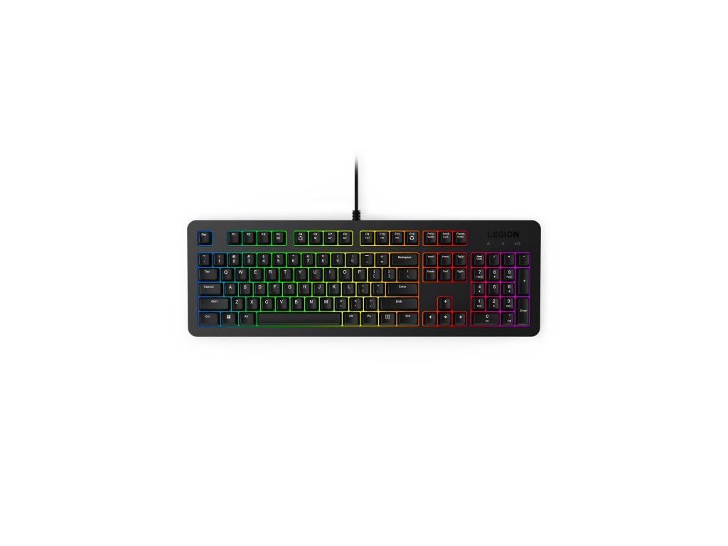 Lenovo Legion K300 RGB, CZ/SK * rozložení ve 3 zónách v plné velikosti * 24klávesová rollover membrána s 5zónovým RGB podsvícením * anti-ghosting * programovatelné klávesy * nastavitelný sklon * odolné proti polití