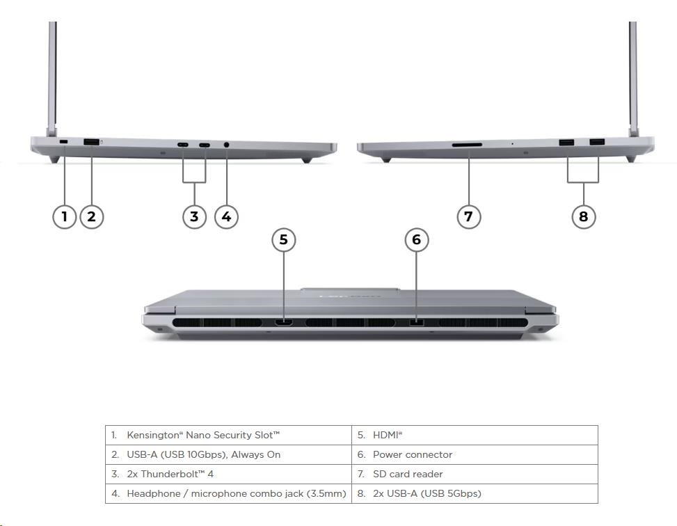 2x USB-C® (Thunderbolt™ 4 / USB4® 40Gbps), with USB PD 3.0 and DisplayPort™ 2.1